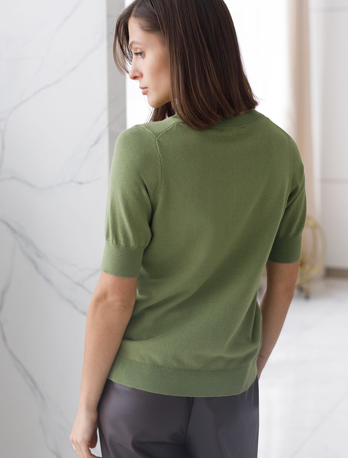 Джемпер тонкой вязки выполнен из вискозы с нейлоном. Модель с V-вырезом свободного силуэта. Мягкая очень приятная к коже пряжа не колется, хорошо держит форму и гарантирует комфорт во время носки в течение всего дня. Изделие дополнено фирменным металлическим логотипом бренда.