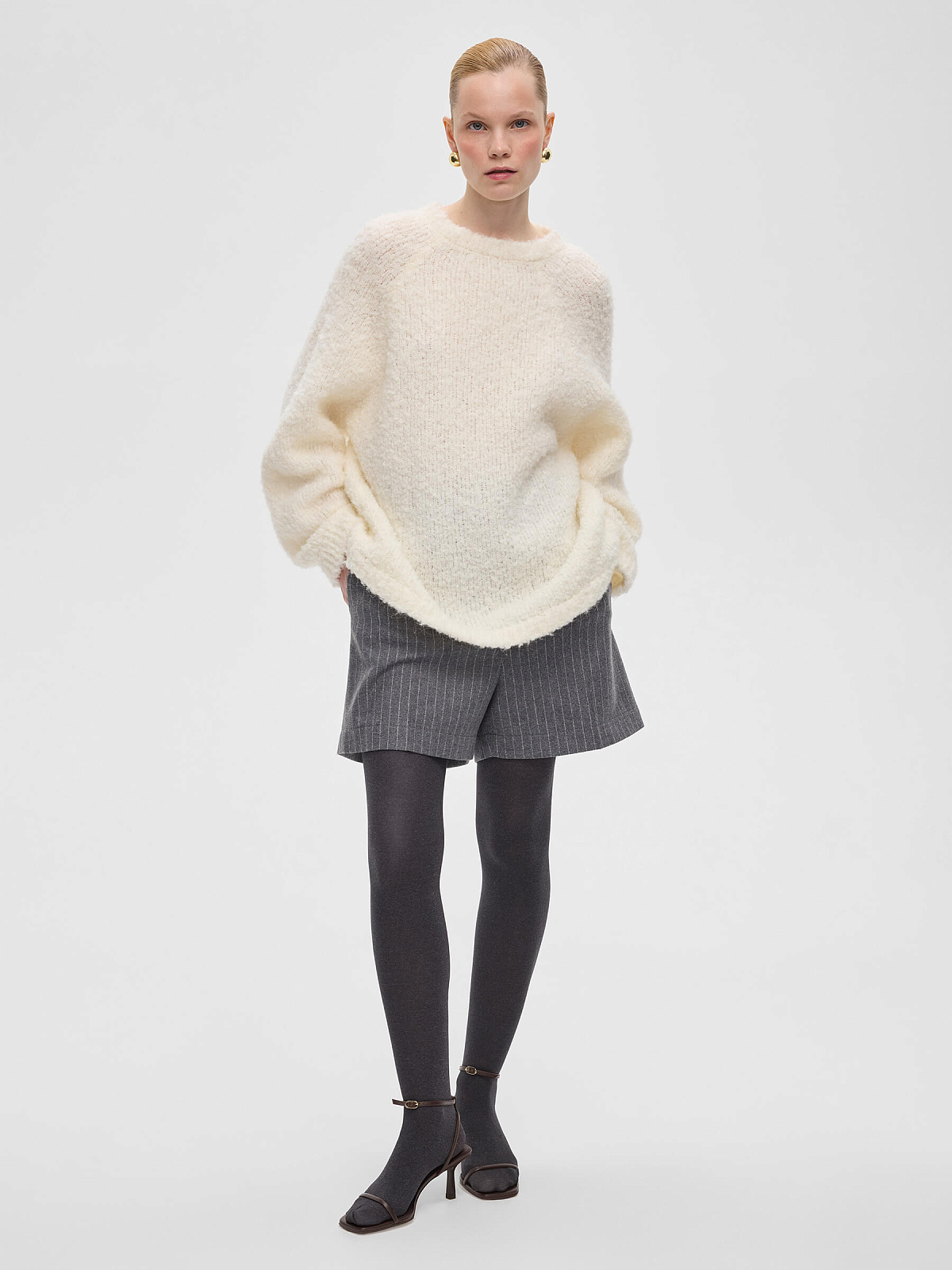 Джемпер удлиненный букле из альпаки и шерсти, молочный