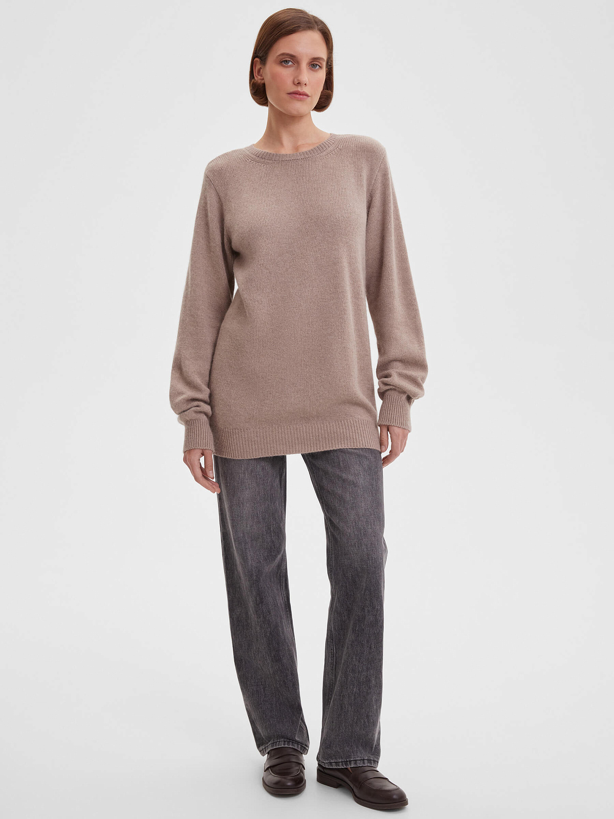 Джемпер удлинённый с ангорой, со спущенной линией плеча по спинке. Изготовлен из смесовой пряжи улучшенных свойств. Комбинация пуха ангорского кролика и тонкой шерсти в составе создают текстуру с характерным ворсом.