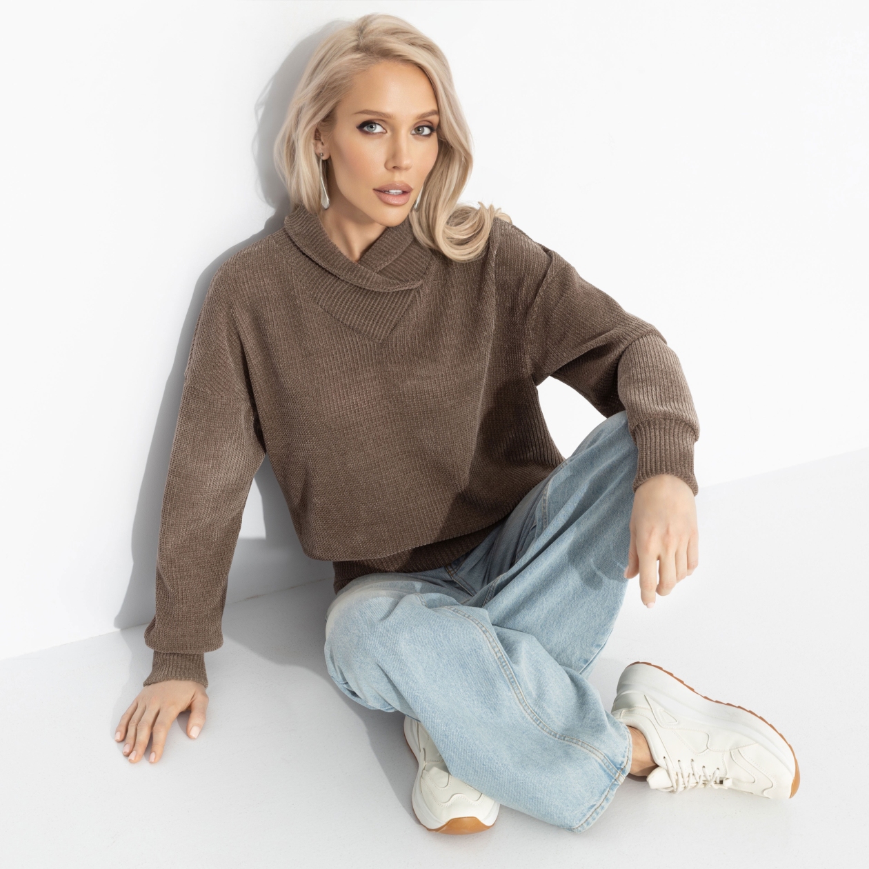 Кофейня на углу, глянцевая чашка латте с ириской тоффи, легкий джаз и ощущение, что весь мир замедлился ради этого момента уюта. Он будто создан для любви: обнимает, согревает и включает ту самую волну нежности. Это комфорт, вызывающий лёгкое эмоциональное привыкание. С ним не хочется расставаться ни на день. Да и не нужно! Джемпер свободной посадки с акцентной горловиной.