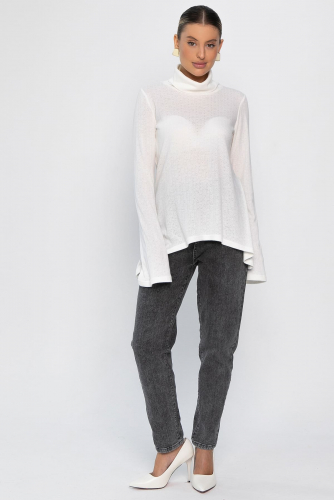 Ажурный трикотажный джемпер в нежно-голубом цвете — идеальный выбор для создания стильных повседневных образов. Модель с втачным удлиненным рукавом и воротником-хомутом придает современный силуэт. Асимметричный крой низа, с удлинением от центра к бокам, добавляет оригинальности. Ткань с перфорацией в виде сердечек придает образу нежность и романтичность. Создайте модные и комфортные образы с нашим новым джемпером!