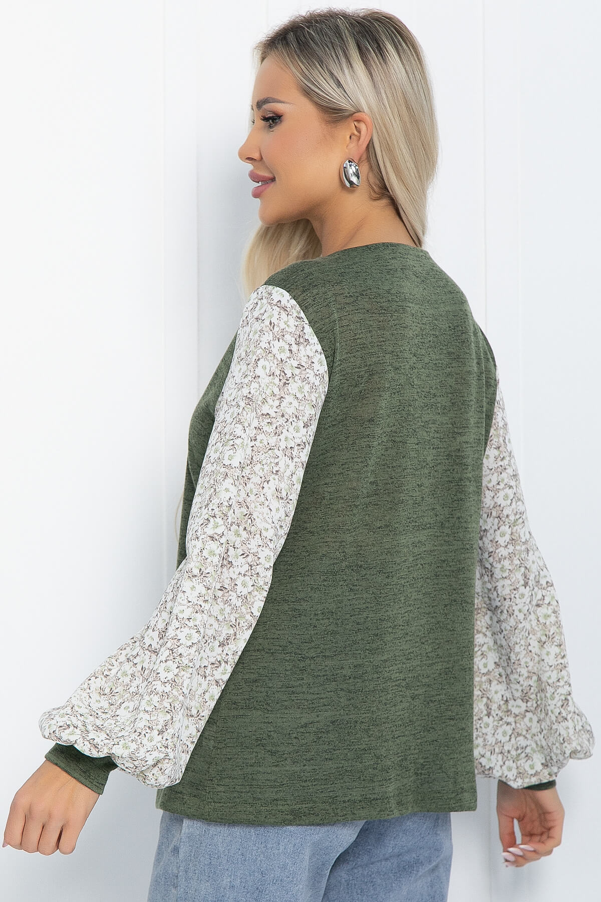 Создайте идеальный повседневный образ с нашим уютным джемпером! Эта модель сочетает в себе комфорт и стиль. Основной акцент сделан на рукавах, выполненных из креп-шифона с цветочным принтом, что придаёт изделию оригинальности и утонченности. Рукава завершаются трикотажными манжетами.