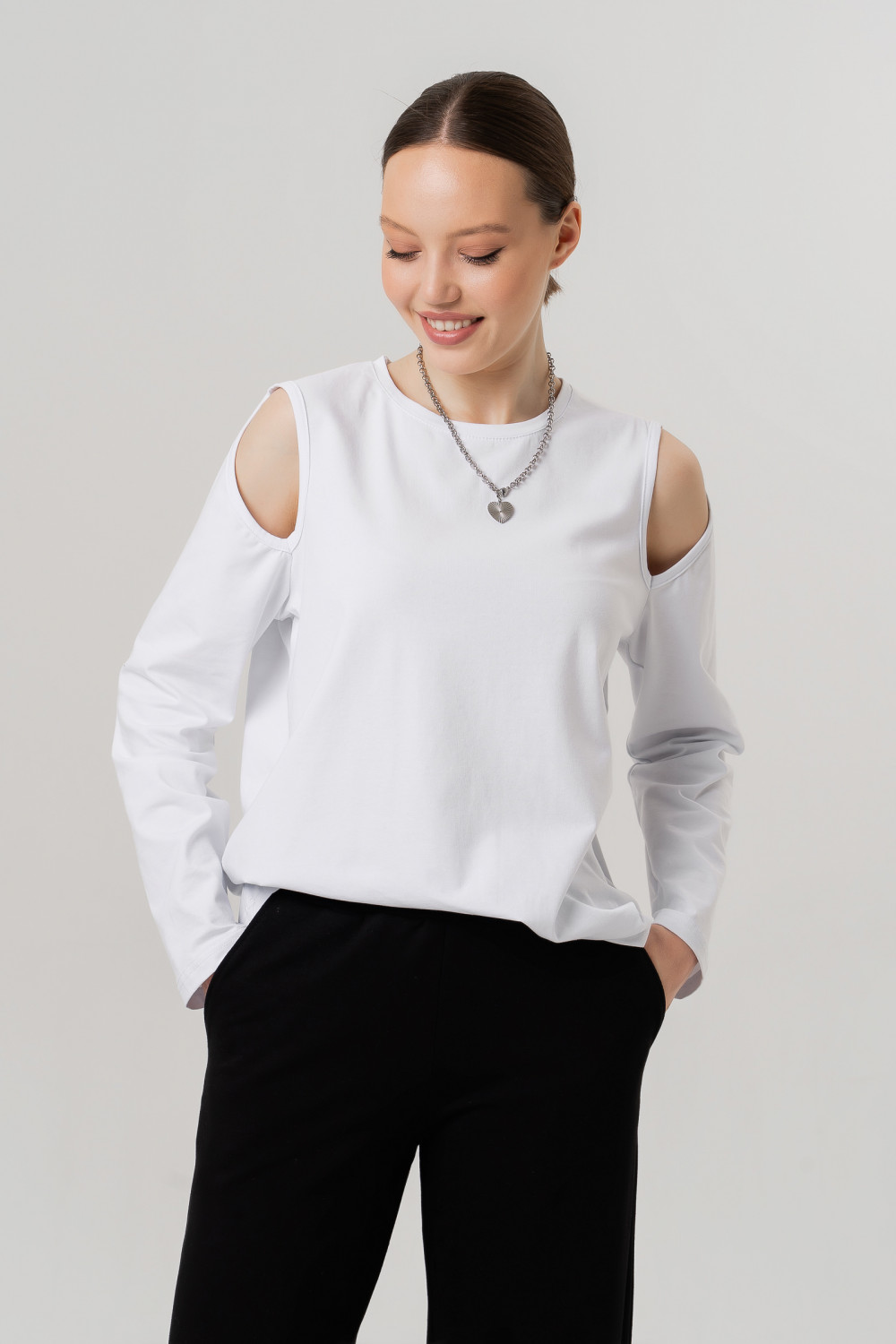 Лонгслив женский, выполненный из хлопкового трикотажа с лайкрой. Втачные длинные рукава с декоративной щелью, вырез горловины круглой формы. Это стильная база любого гардероба. В сочетании с различными вещами можно получить абсолютно разные образы, как для повседневной жизни, так и для яркой вечеринки.