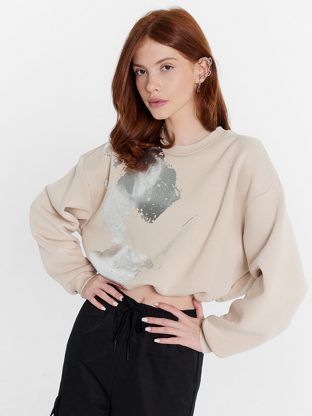 Укороченный джемпер (свитшот) женский оверсайз из высококачественного хлопка в стиле гранж. Материал изделия — футер с подчесом. Перед и спинка цельнокроеные, длиной до линии бедер. Горловина круглой формы. Плечо спущено, пройма углублена. Рукав длинный, широкий, на манжете. В джемпере тепло и комфортно. Широкий размерный ряд позволяет выбрать эту модель девушкам размера plus-size. Большое разнообразие цветовых решений. Если вам нужна универсальная вещь, этот джемпер для вас. Порадуйте себя и своих близких красивыми подарками из линейки базовой одежды для женщин от Mark Formelle!