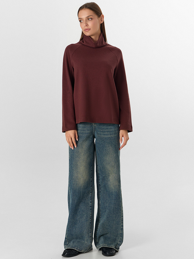 Воротник-стойка — деталь, которая делает этот джемпер по-настоящему универсальным. Он мягко облегает шею, обеспечивая дополнительное тепло и создавая лаконичный завершенный силуэт. Такой воротник не требует дополнительных аксессуаров — он сам по себе является выразительным элементом, который добавляет образу структурности и элегантности.