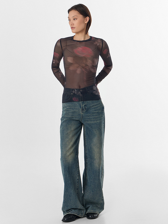 Нежные розы, проступающие сквозь сетчатую ткань, придают образу романтичное настроение. Этот джемпер станет идеальным спутником для вечерних мероприятий — он беспроигрышно смотрится в паре с кожаными брюками, юбками или джинсами с завышенной талией.