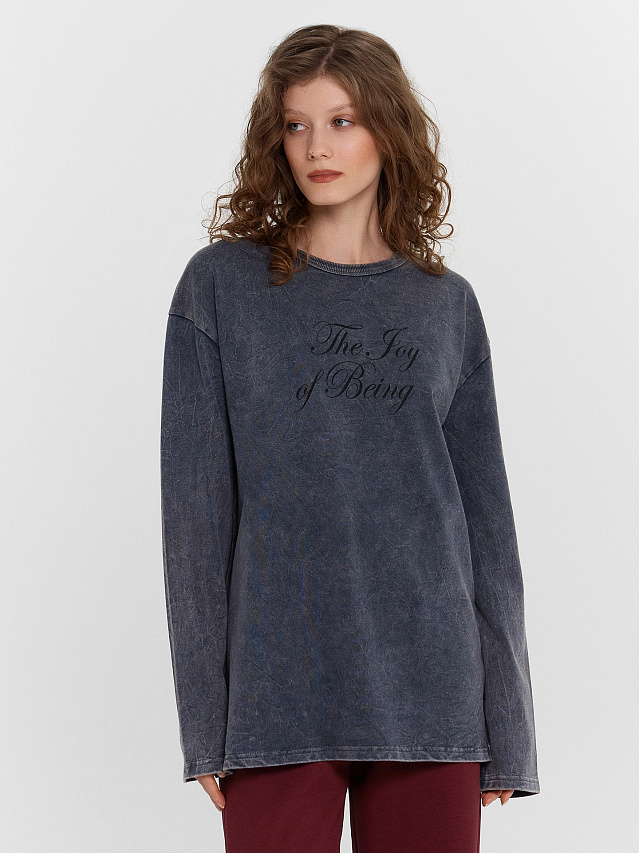 Джемпер женский черный с обработкой эйсид и надписью "The joy of being"