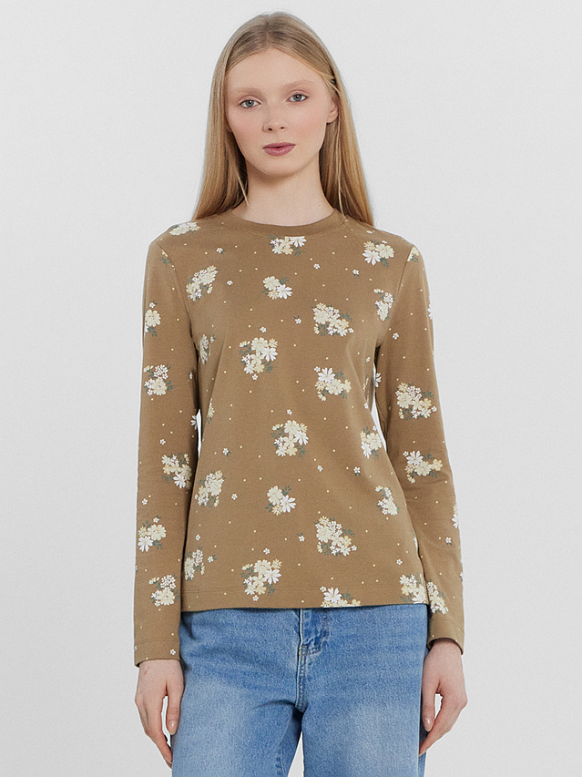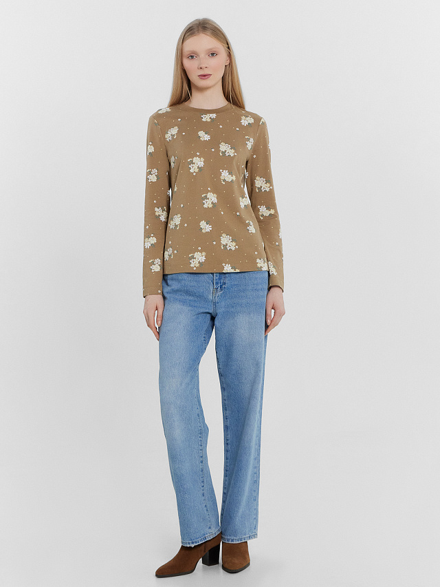 Джемпер женский коричневый с цветочным принтом