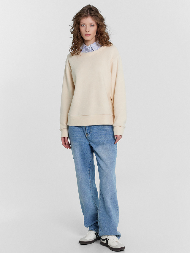 Джемпер женский кремовый с воротником, имитирующим рубашку