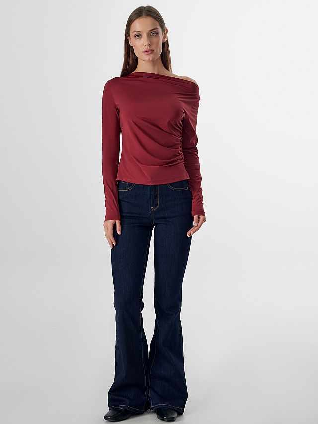 Глубокий вырез горловины «лодочка» и спущенное одно плечо создают соблазнительный акцент, открывая линию ключиц. Такая деталь моментально приковывает внимание.