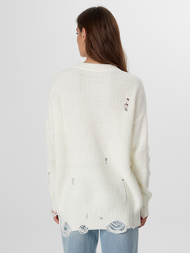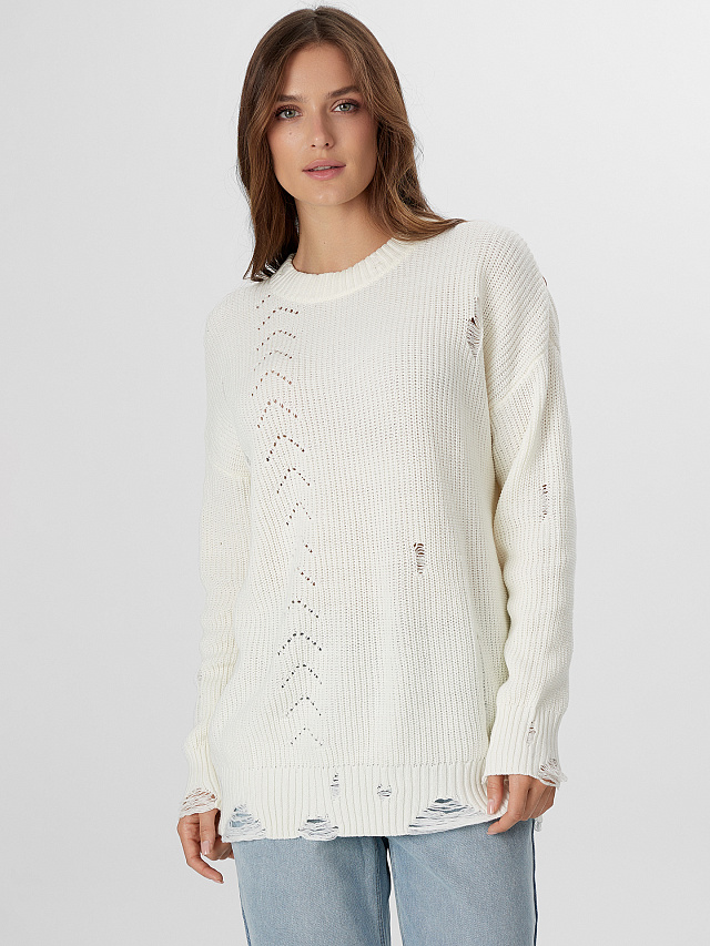 Джемпер вязаный женский молочный оверсайз — это идеальное сочетание уюта, стиля и универсальности. Модель свободного силуэта с круглой горловиной и длинными рукавами обеспечивает комфорт и тепло в прохладные дни, мягко облегая фигуру без стеснения движений. Сдержанный молочный цвет и лаконичный дизайн делают джемпер отличным решением для повседневных образов: он легко сочетается с джинсами, брюками, юбками или легинсами.
