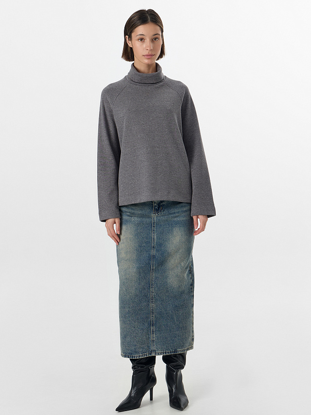 Рукава реглан не ограничивают движения, подчеркивают расслабленный силуэт и создают плавный переход от горловины к рукавам. Обработка низа и манжетов швом в подгибку обеспечивает аккуратную отделку и устойчивость к деформации.