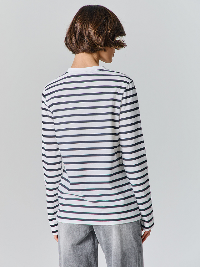 Бело-черный полосатый джемпер для женщин станет гармоничным дополнением к образу, где классическая эстетика встречается с повседневным удобством. Модель прямого силуэта с круглой горловиной и длинными рукавами легко комбинируется с разной одеждой.