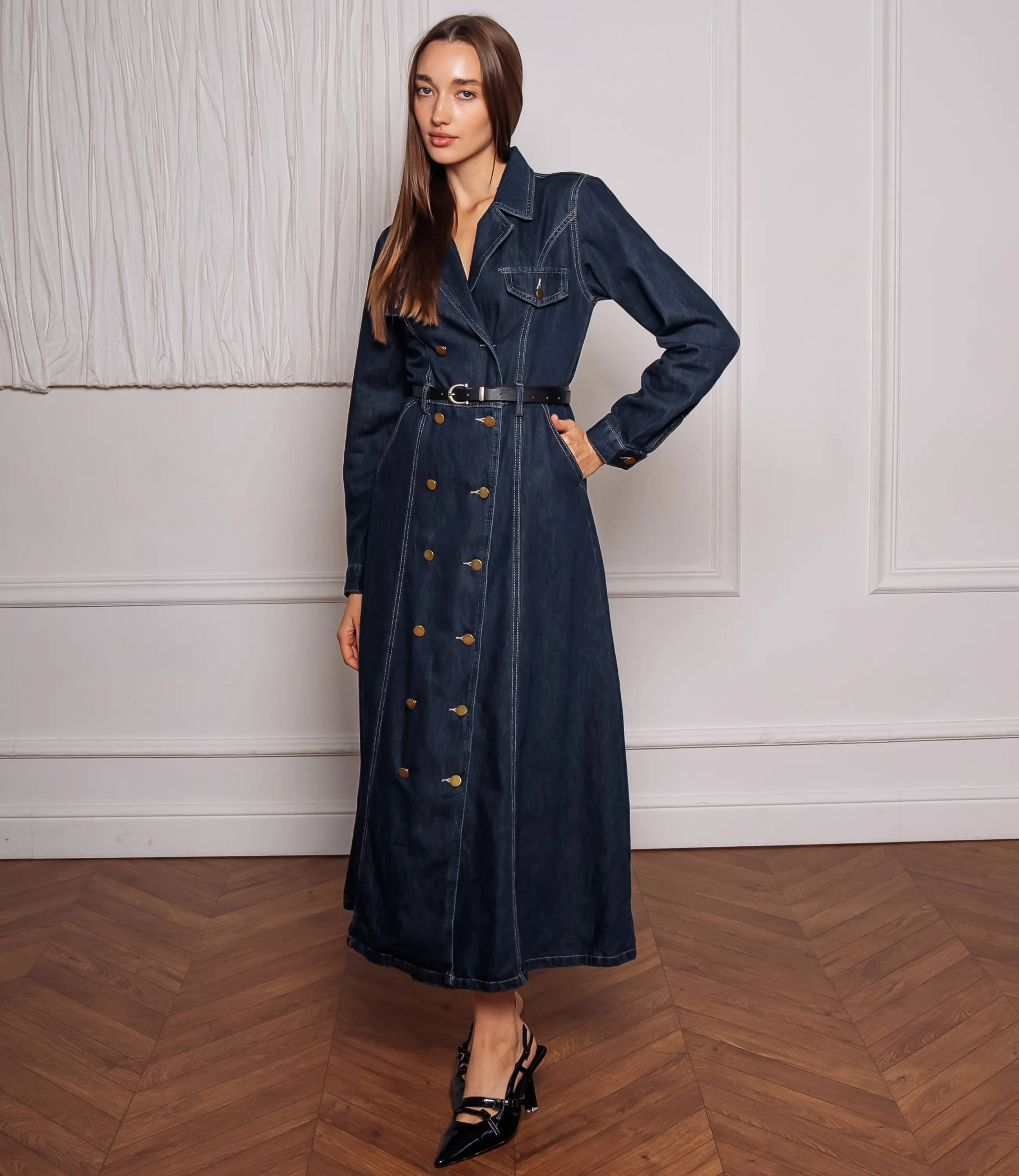 Платье – это вещь, которая подчеркивает женственность каждой представительницы прекрасного пола. Данная модель платья с коротким рукавом отлично подойдет для летнего сезона. Платье длиной макси‑миди до щиколоток с приталенным силуэтом и лёгким расклёшенным подолом, застёгивается по всей длине на ряд крупных пуговиц. Отложной воротник с небольшим лацканом, образует V‑образный вырез при расстёгнутых верхних пуговицах. Длинные рукава с небольшим сбором в плечевой зоне, манжеты на пуговице, аккуратная длина до запястья. Вертикальные швы и рельефы от плеч к талии создают приталивание; тонкий ремень подчёркивает талию и добавляет структурности силуэту. Плавно расширяющийся подол со свободной посадкой для удобства движений. Для изготовления использована ткань 100% хлопок, которая характеризуется отличным качеством. Даже после многих стирок платье не потеряет изначальной красоты. Вы обязательно будете его носить с удовольствием. Обратите внимание на цвет джинсового платья. Он является насыщенным и полностью соответствует фото на сайте. Чтобы вы были уверены в размере, мы предоставили на сайте таблицу. Воспользовавшись ею, вы сможете самостоятельно обмерить себя и удостовериться. Установленная нами цена является приемлемой. Не откажите себе в удовольствии быть неповторимой! Рост 168 см, 85-63-92. Вы можете заказать онлайн презентацию на интересующие Вас модели. Наши менеджеры свяжутся с Вами и проведут индивидуальную видеотрансляцию, помогут составить заказ и ответят на Ваши вопросы.