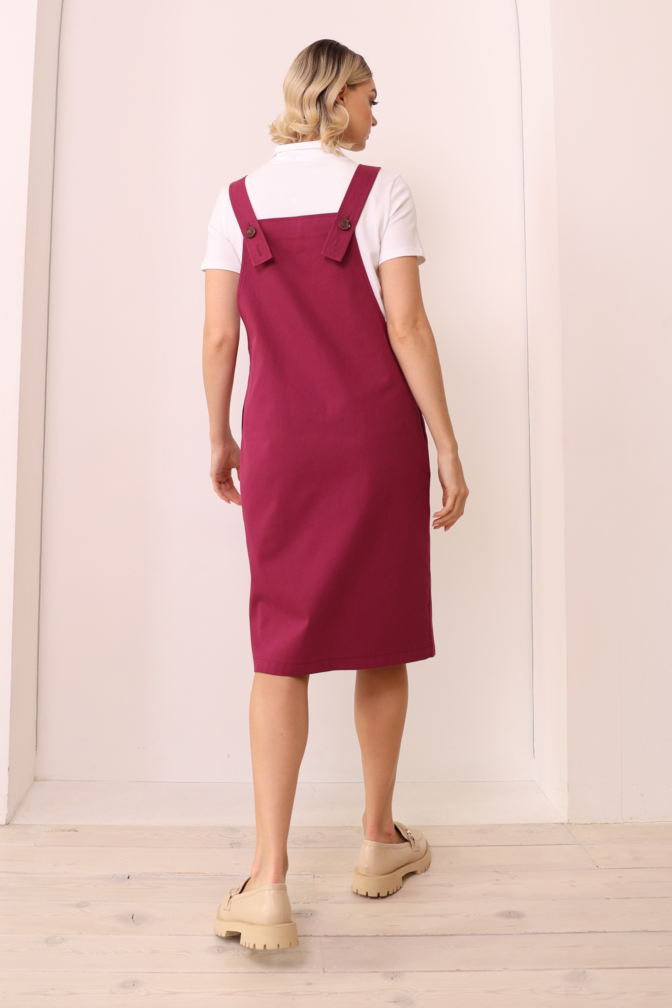 Джинсовый сарафан прямого кроя на бретелях, углубленной проймой и карманами в боковых швах.