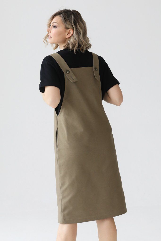Бретели регулируются по длине на спинке с помощью дополнительной петли для пуговицы.