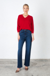 Брюки из эластичного денима, выполнены по классической джинсовой технологии (варка с эффектом легкого выбеливания). Крой классический прямой, слегка зауженный книзу. На задней части брюк выполнены накладные карманы, на передней- карманы с подкройным бочком. Притачной пояс со шлёвками. Застёжка на молнию-гульфик и пуговицу.