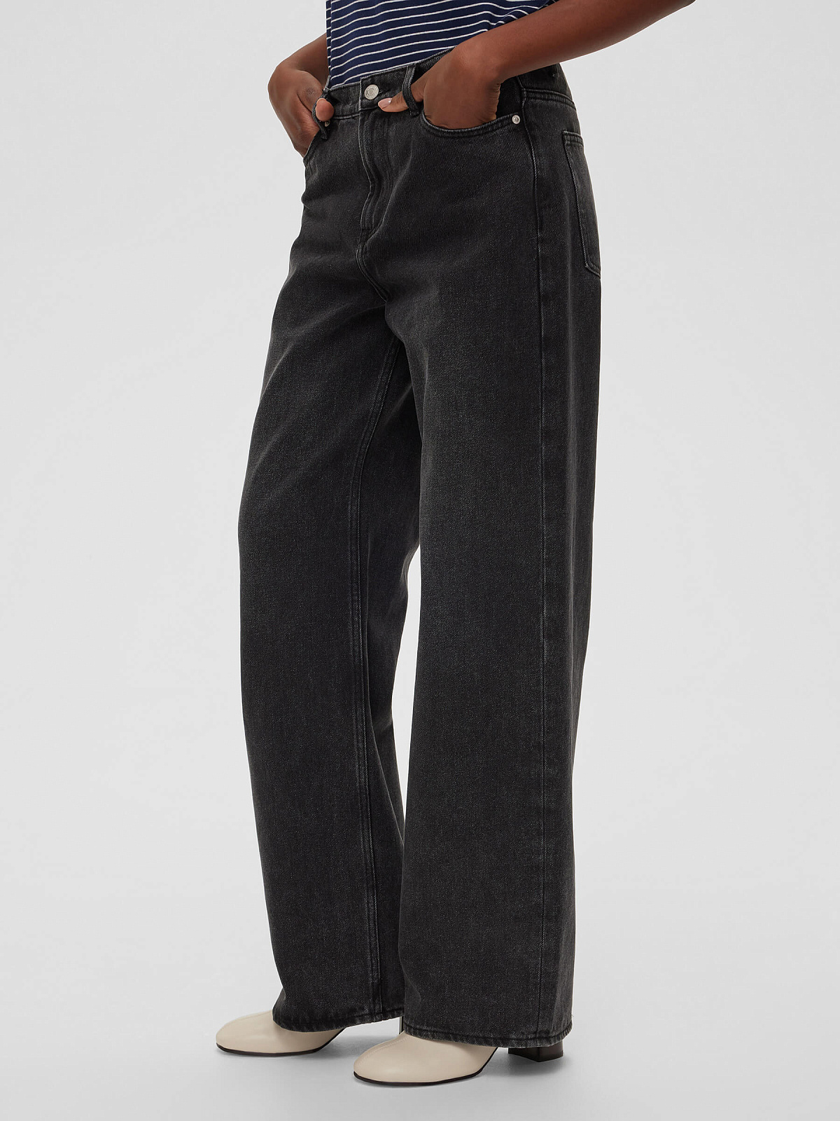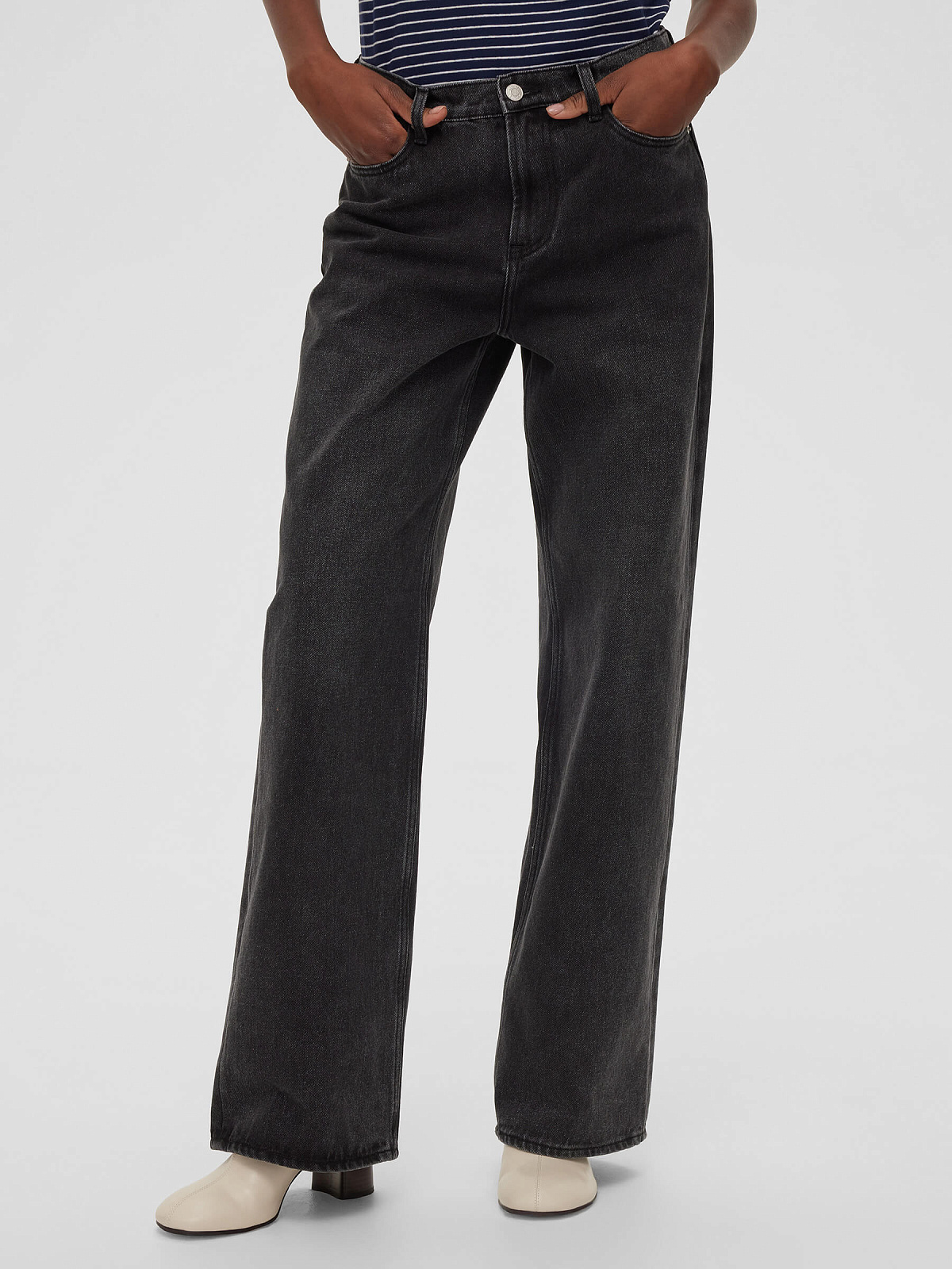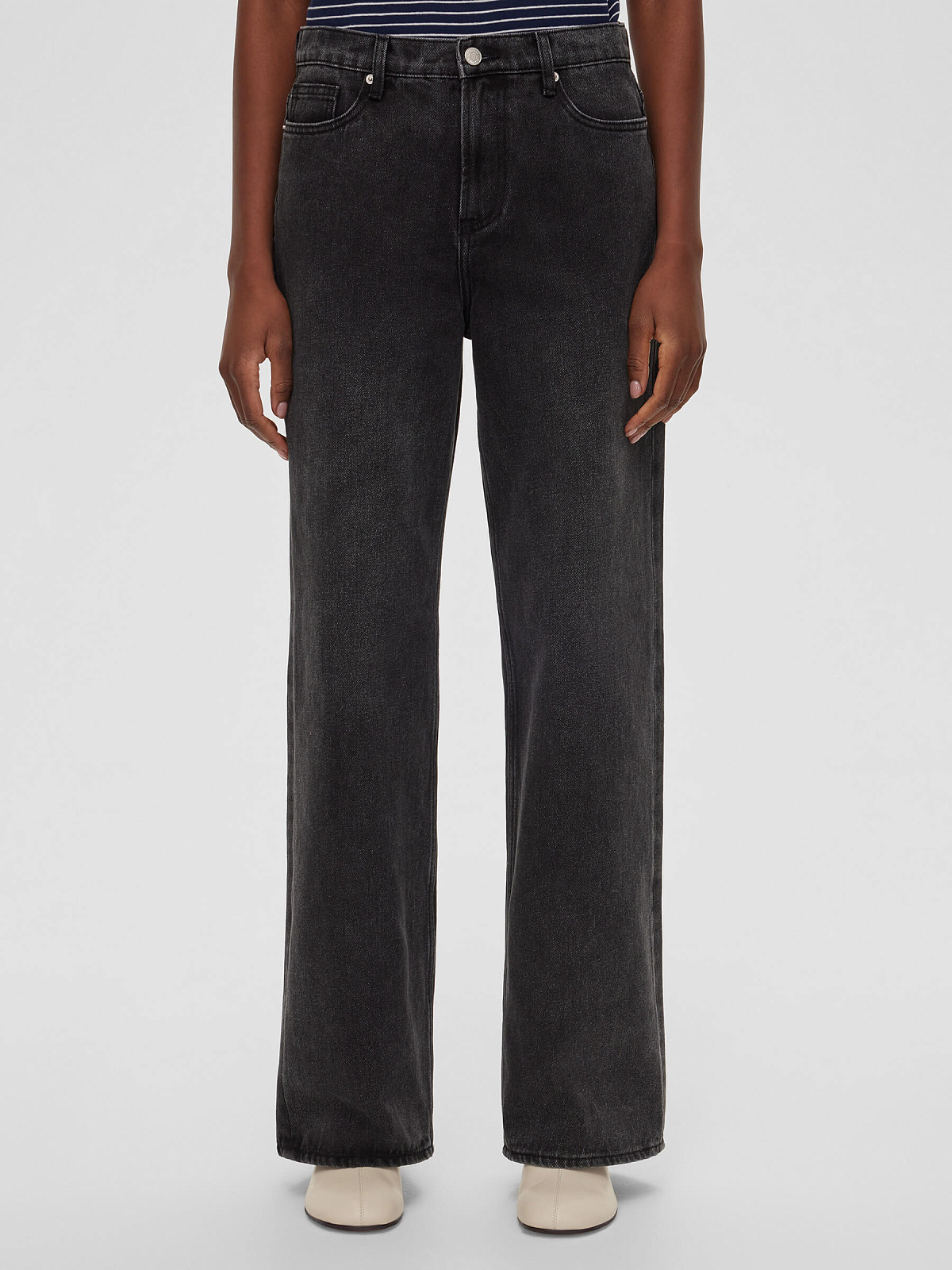 Джинсы свободного кроя - базовая вещь в любом гардеробе. Модель оснащена пятью карманами для удобства и функциональности, а застежка на молнию и пуговицу обеспечивает надежную посадку. Брендированная фурнитура добавляет изысканный акцент, подчеркивая качество изделия.