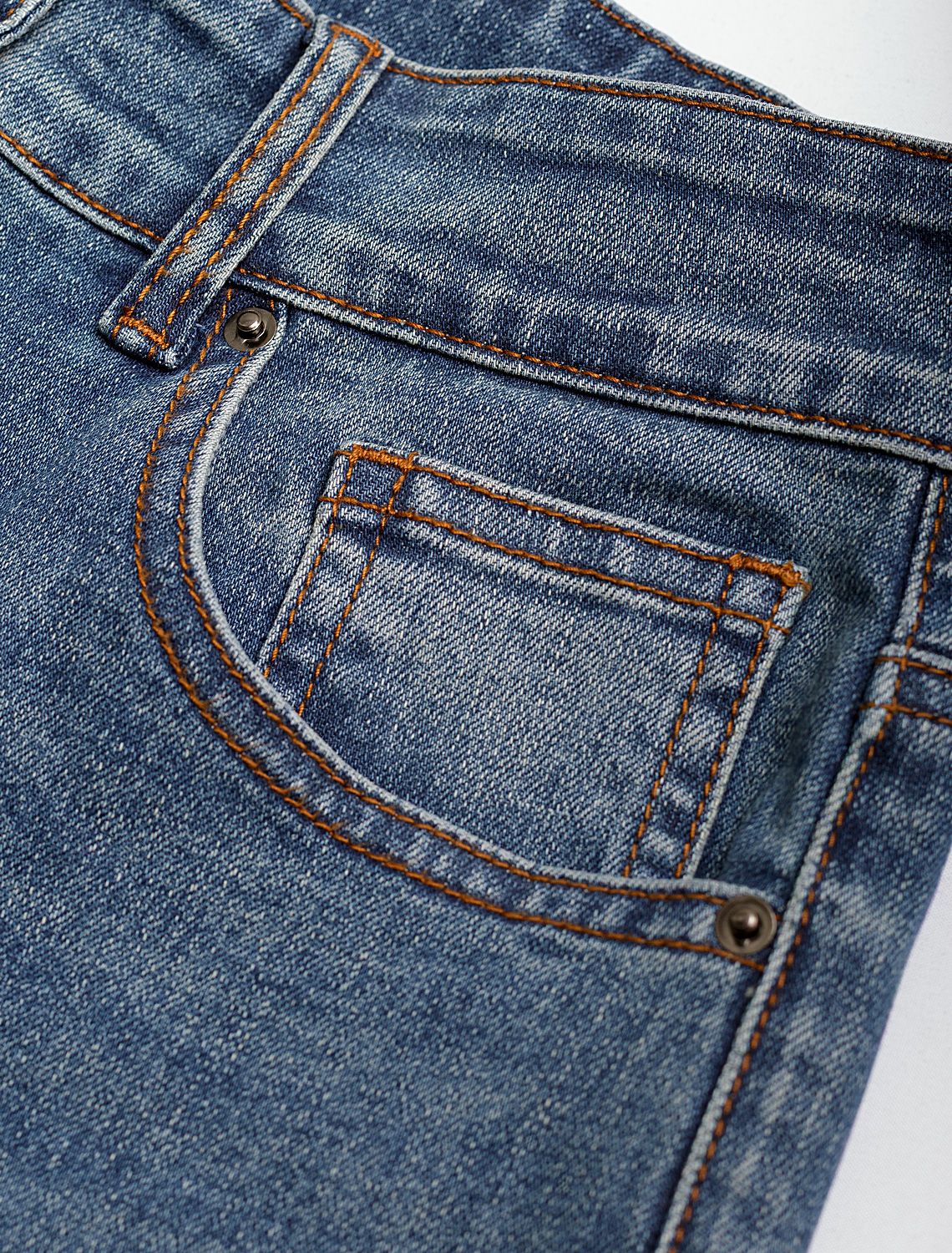 Джинсы клеш от колена расширенные к низу синего цвета выполнены из эластичного денима плотностью 14,8 OZ, который отлично тянется и мягко садится по фигуре. Цвет денима имеет неоднородную фактуру с эффектом мрамора в виде светлых разводов. Эластичный материал дарит свободу движений, а облегченная ткань делает эти джинсы идеальным выбором на каждый день. Клеш от колена выгодно вытягивает силуэт, визуально удлиняет ноги и подчеркивает округлые бедра, создавая женственный образ без лишних усилий. Джинсы подходят на большие размеры, позволяя чувствовать себя уверенно, специальный крой выгодно выделяет достоинства и мягко маскирует возможные нюансы фигуры.