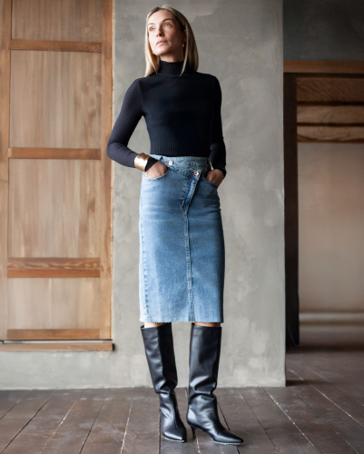 В синем цвете ткань немного толще, чем голубой и черный цвета. Свободные штанины вверху, заужаются к низу, делая силуэт стройнее, открывая нижнюю часть лодыжки.