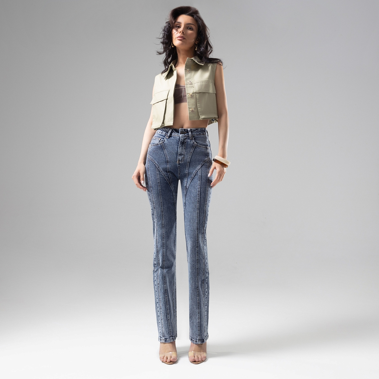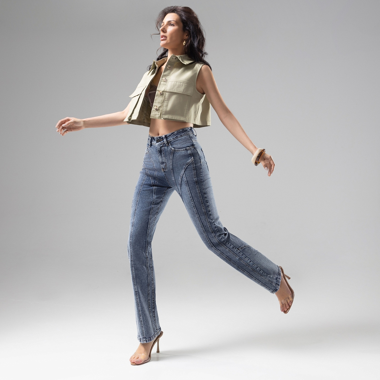 Джинсы «New York» синего цвета — это воплощение дерзкой элегантности и современного стиля. Они созданы для тех, кто ценит безупречный внешний вид и комфорт. Высокая посадка этих джинсов не только подчеркивает талию, но и визуально удлиняет ноги, делая ваш образ более стройным и утонченным. Эти джинсы станут незаменимым элементом вашего гардероба, который подходит для любых повседневных и праздничных мероприятий.