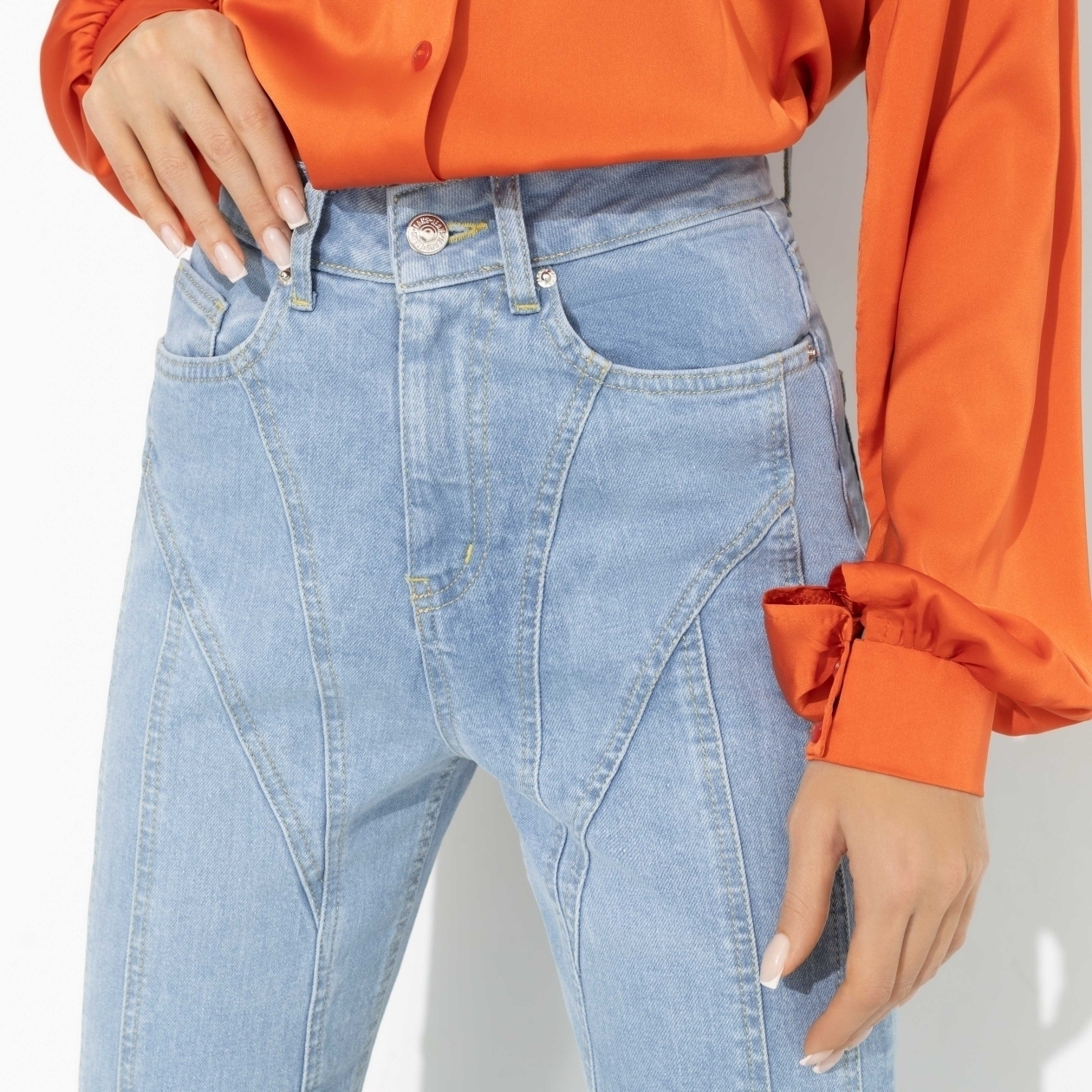 Джинсы «New York» в светло-голубом оттенке воплощают стиль и комфорт, которые так необходимы в повседневной жизни. Высокая посадка обеспечивает идеальную посадку и поддержку, создавая эффект удлиненных ног и подчеркивая вашу талию. Эти джинсы идеально подходят для создания как повседневных, так и элегантных образов, позволяя вам чувствовать себя уверенно в любой ситуации.