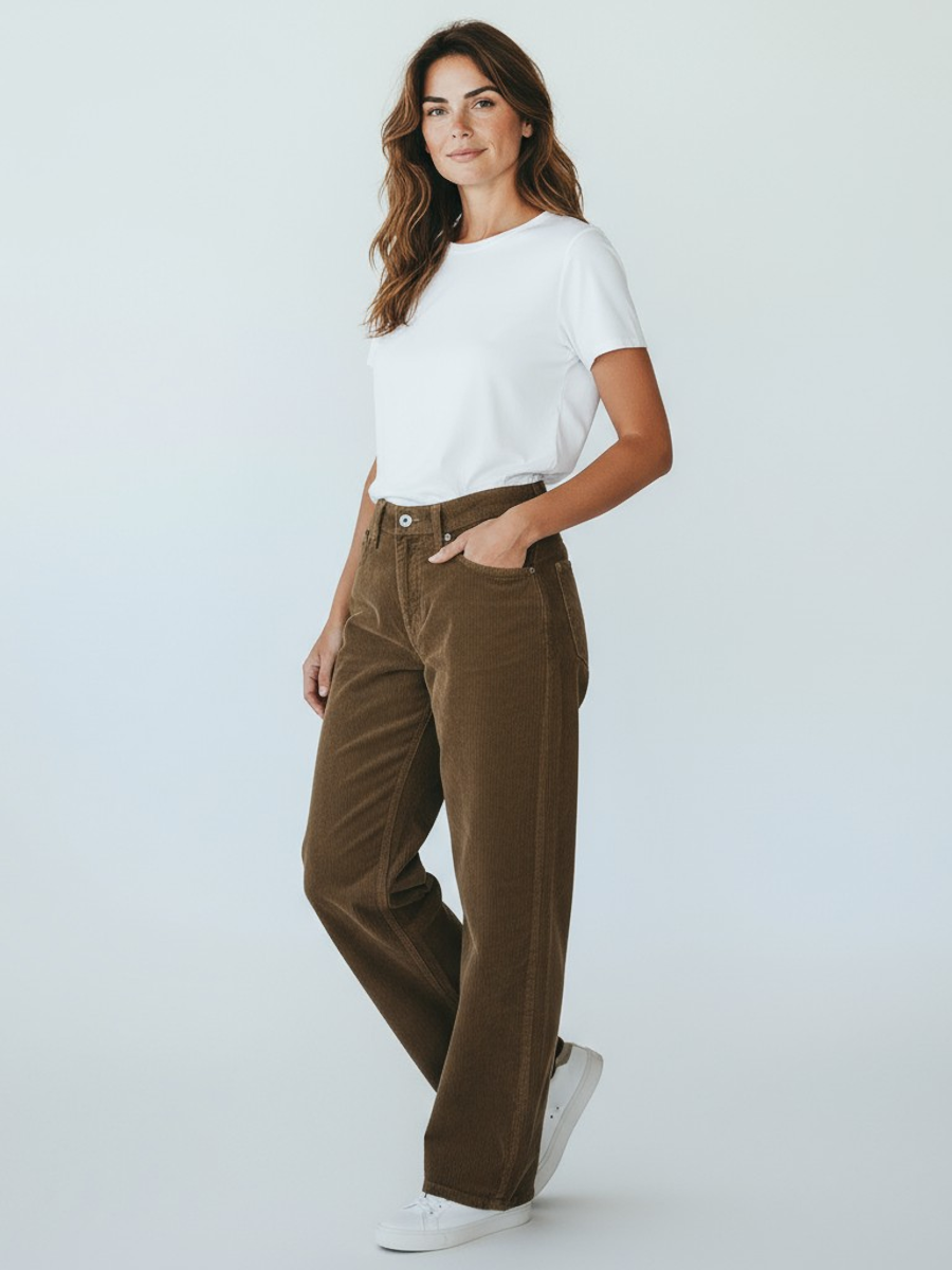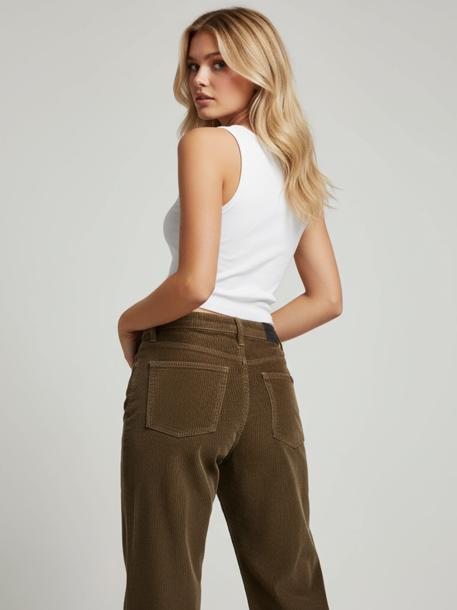 Брюки Cord, созданные в духе 70-х годов, являются классическим элементом ретро-моды.