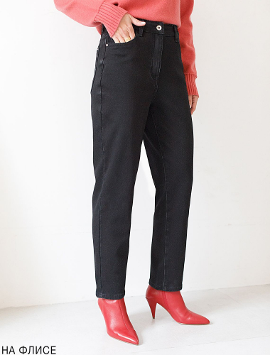 Джинсы-трубы из эластичного денима на флисе