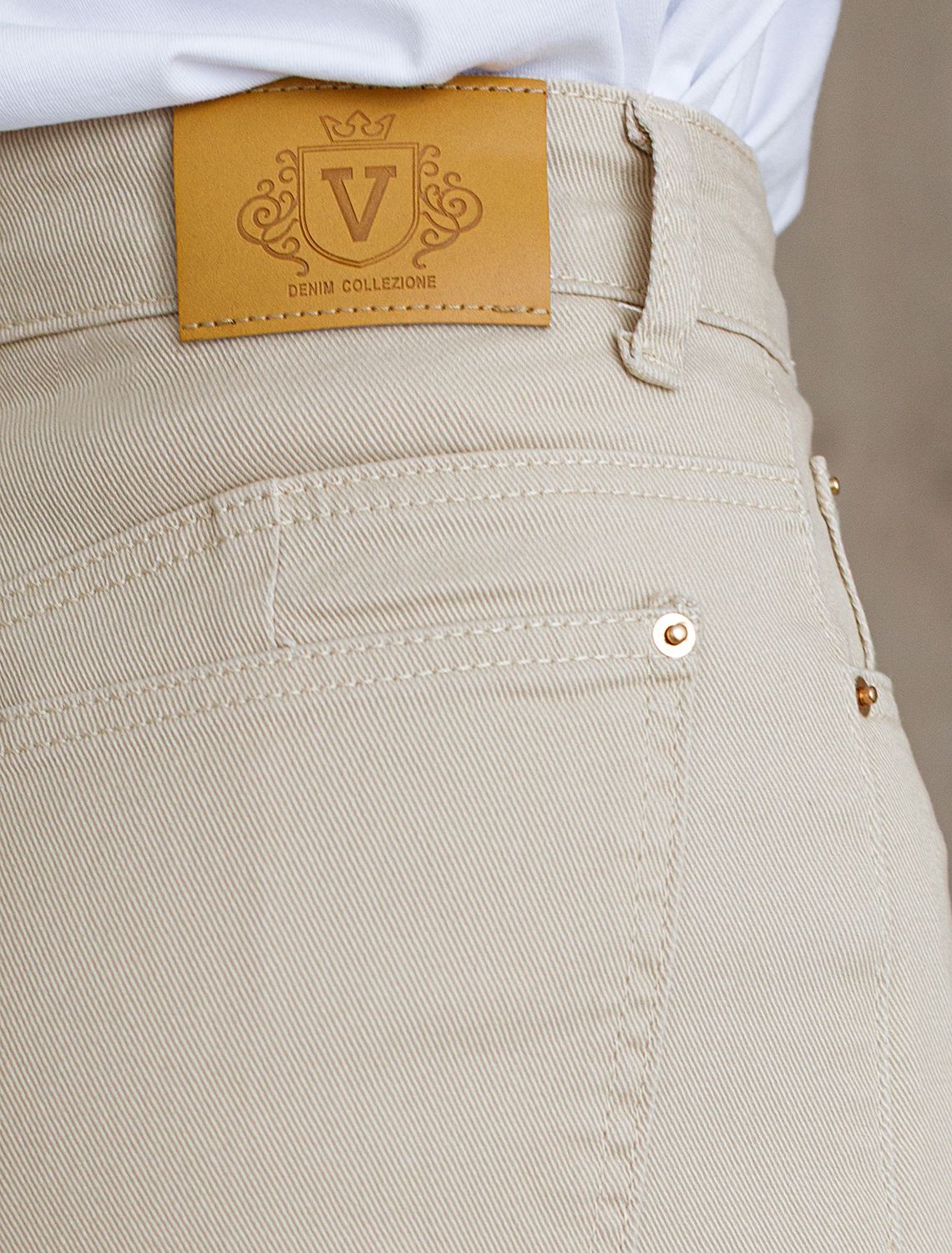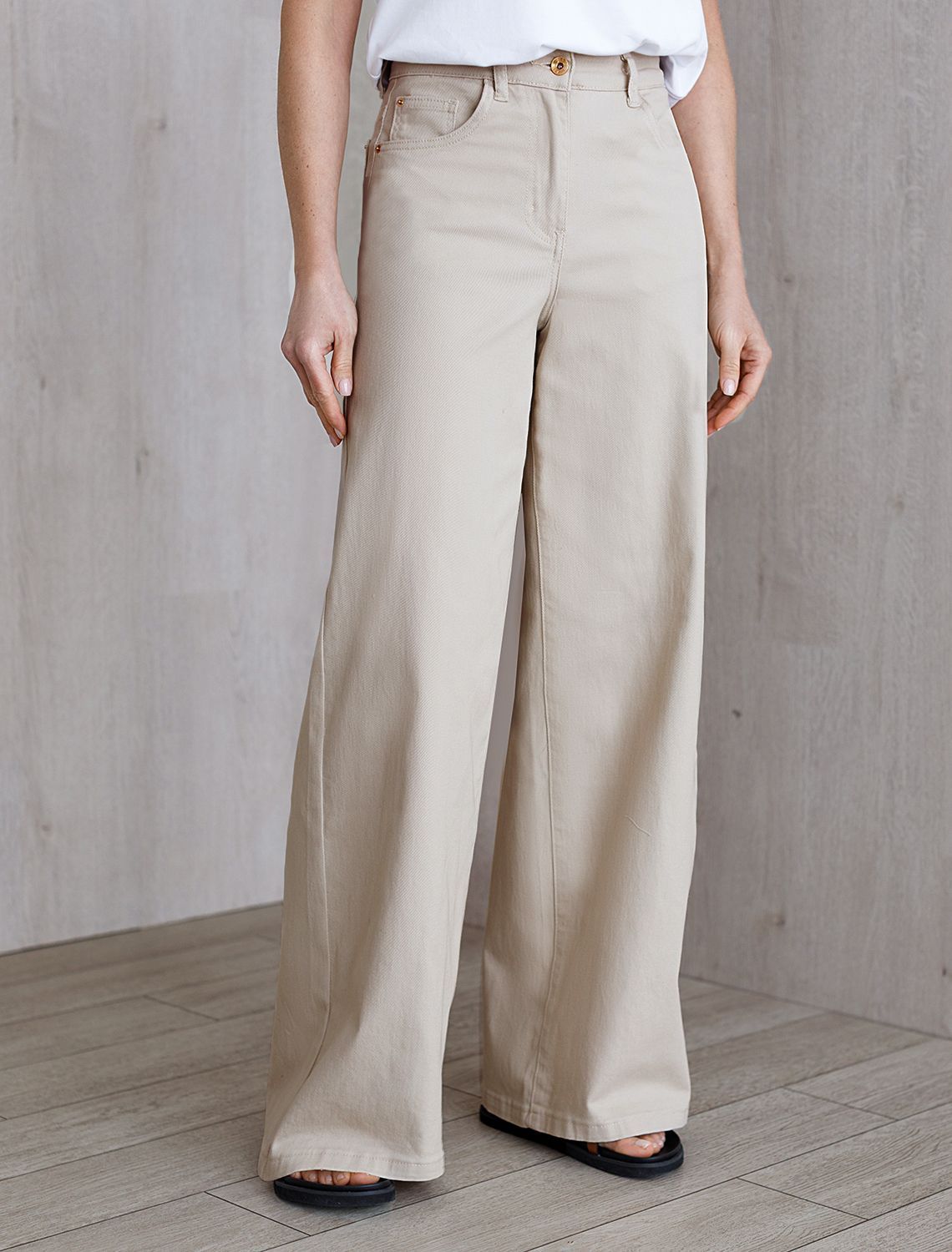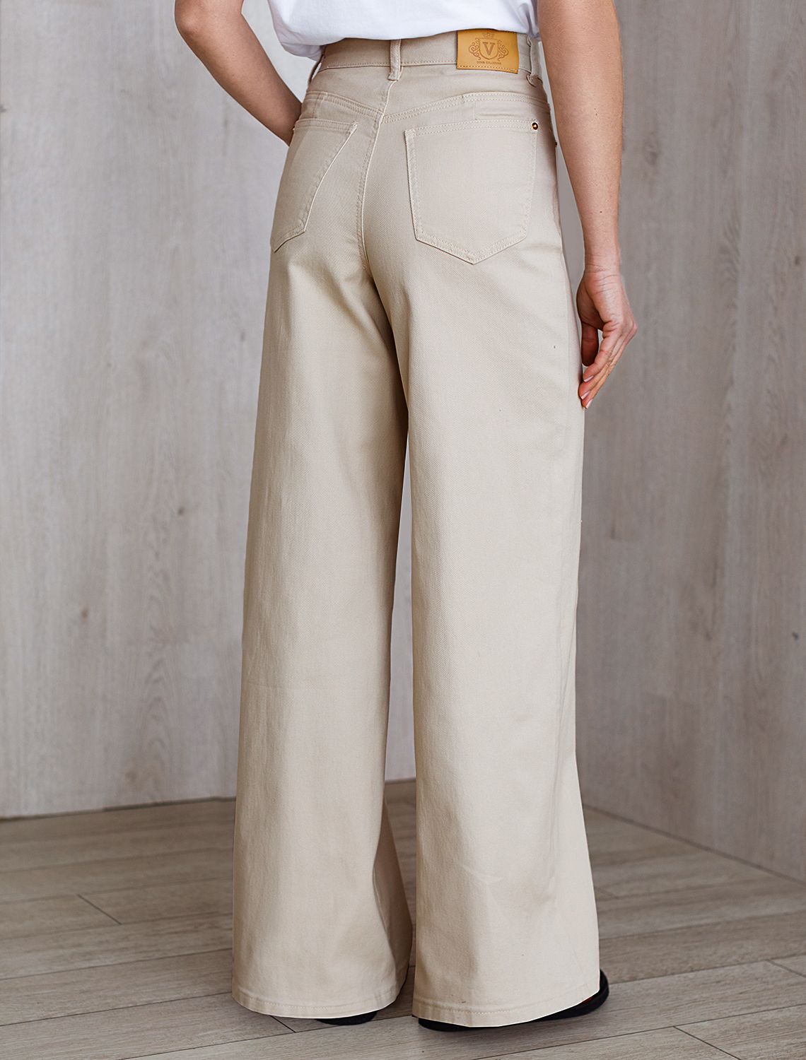 Джинсы трубы бежевого цвета выполнены из эластичного денима плотностью 11 OZ - легкость и свобода движений, подходят для активного дня. Джинсы прямого кроя визуально вытягивают силуэт, благодаря эластану в составе аккуратно садятся на любую фигуру, подчеркивая достоинства, и обеспечивают максимальный комфорт в течение дня, не сковывая движения. Широкая размерная линейка подходит для разных типов фигур: свободные джинсы комфортны как для обладательниц пышных форм, так и для худеньких. Джинсы средней плотности идеально держат форму даже при активном движении и не вытягиваются после долгой носки. Качественная фурнитура и нашивка из эко-кожи с логотипом бренда делают эти джинсы премиальными. Широкий крой от бедра добавляет актуальности — такие джинсы отлично сочетаются как с обувью на каблуке, так и на плоском ходу. Благодаря универсальному дизайну джинсы легко комбинируется с разными элементами гардероба.