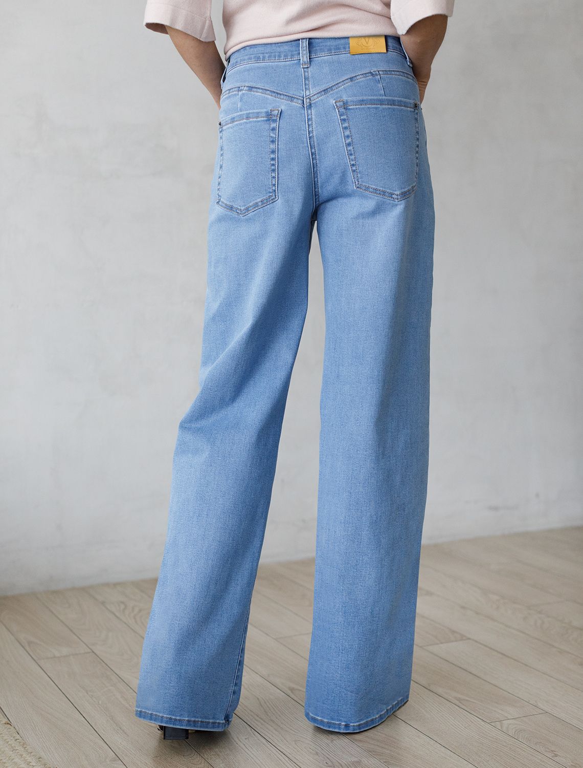 Стильные джинсы трубы голубого цвета цвета прямого кроя выполнены из эластичного облегченного денима, что делает их особенно удобными для повседневной носки. Легкая декоративная стирка добавляет интересный акцент и подчеркивает современный дизайн. Джинсы правильного кроя визуально вытягивают силуэт, благодаря эластану в составе аккуратно садятся на любую фигуру, подчеркивая достоинства и обеспечивают максимальный комфорт в течение дня, не сковывая движения. Широкая размерная линейка подходит для разных типов фигур: свободные джинсы комфортны как для обладательниц пышных форм, так и для худеньких. Вы сможете подабрать джинсы на низкий или высокий рост. Джинсы идеально держат форму даже при активном движении и не вытягиваются после долгой носки. Качественная надежная фурнитура делает эти джинсы премиальными. Широкий подгиб добавляет актуальности — такой тренд отлично сочетается как с обувью на каблуке, так и на плоском ходу. Благодаря универсальному дизайну джинсы легко комбинируется с разными элементами гардероба.