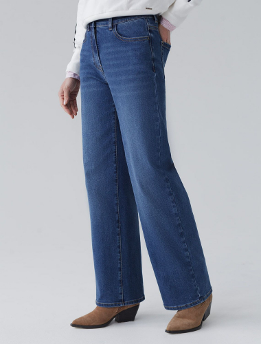 Стильные джинсы трубы синего цвета цвета прямого кроя выполнены из эластичного облегченного денима, что делает их особенно удобными для повседневной носки. Легкая декоративная стирка добавляет интересный акцент и подчеркивает современный дизайн. Джинсы правильного кроя визуально вытягивают силуэт, благодаря эластану в составе аккуратно садятся на любую фигуру, подчеркивая достоинства и обеспечивают максимальный комфорт в течение дня, не сковывая движения. Широкая размерная линейка подходит для разных типов фигур: свободные джинсы комфортны как для обладательниц пышных форм, так и для худеньких. Вы сможете подабрать джинсы на низкий или высокий рост. Джинсы идеально держат форму даже при активном движении и не вытягиваются после долгой носки. Качественная надежная фурнитура делает эти джинсы премиальными. Широкий подгиб добавляет актуальности — такой тренд отлично сочетается как с обувью на каблуке, так и на плоском ходу. Благодаря универсальному дизайну джинсы легко комбинируется с разными элементами гардероба.