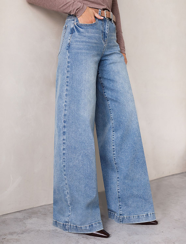 Широкие джинсы с декоративной стиркой из эластичного плотного денима