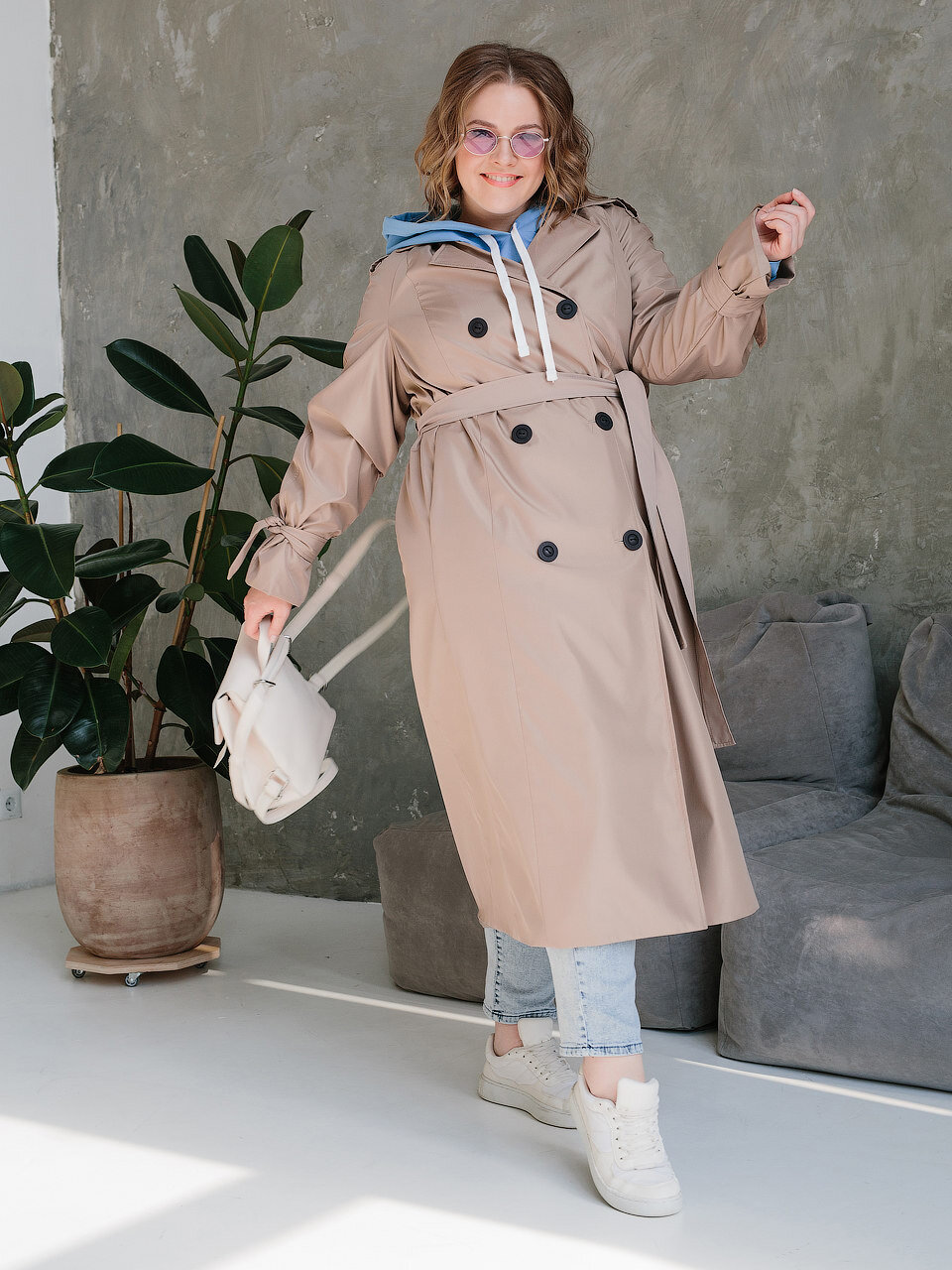 Состав: 95% хлопок, 5% лайкра. Ткань: Деним. Цвет: пыльно-голубые. Посадка: Средняя. Силуэт: Прямой. Длина: до щиколотки. Особенности модели: джинсы классические 5-ти карманные. Джеггинсы. С отрезной кокеткой по спинке. Без подклада. Параметры модели: ОГ106/ОТ89/ОБ124. Рост модели 170 см. Размер изделия на модели 54. В данном образе используется худи Б465-18 и тнренч Б493-15.