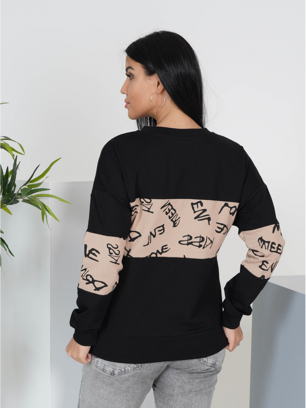 Удобный крой, не сковывающий движений; отсутствие пуговиц, молний, шнуровок; горловина кофты, выполненная круглым вырезом; рукава и низ изделия на манжете из рибаны.
