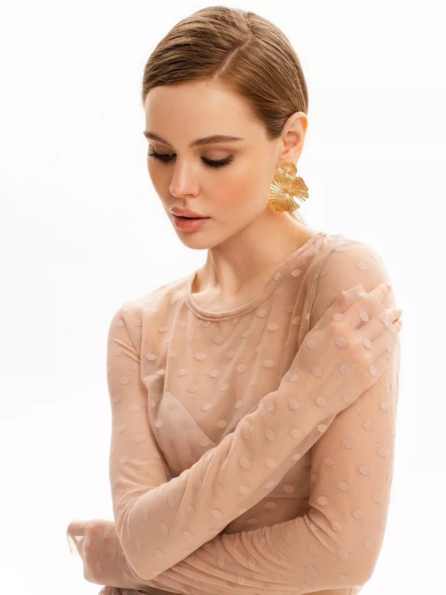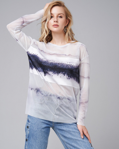 Лонгслив женский из сетки с принтом - трендовый элемент гардероба для создания интересных многослойных образов. Его можно надевать под платье, жакет, кардиган, жилет или даже футболку. Принт -узор. Лонгслив из сеточки очень приятен для тела. Он как будто обволакивает кожу. Материал мало тянется.