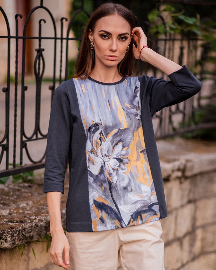 Лонгслив с принтом — авторская модель свободного кроя с продуманными деталями. Женская кофта сделана из хлопкового футера двунитки, который отличается мягкостью и износостойкостью. Материал хорошо держит форму, не скатывается и спокойно переносит стирки. Принтованная вставка по центру — настоящее произведение искусства от наших художников. К тому же эта вертикаль визуально вытягивает силуэт и стройнит его. Лонгслив женский имеет рукав ¾, который красиво открывает запястья и акцентирует внимание на самой тонкой части рук. Такой приём стройнит, а также идеально подходит девушкам с длинными руками, которым сложно найти подходящую длину. Хлопковая кофта идеально подходит для любого типа фигуры. Выбирая изделие, ориентируйтесь на таблицу в карусели. Обратите внимание, что кофта для женщин представлена и в больших размерах. 80% хлопок, 15% полиэстер, 5% лайкра
