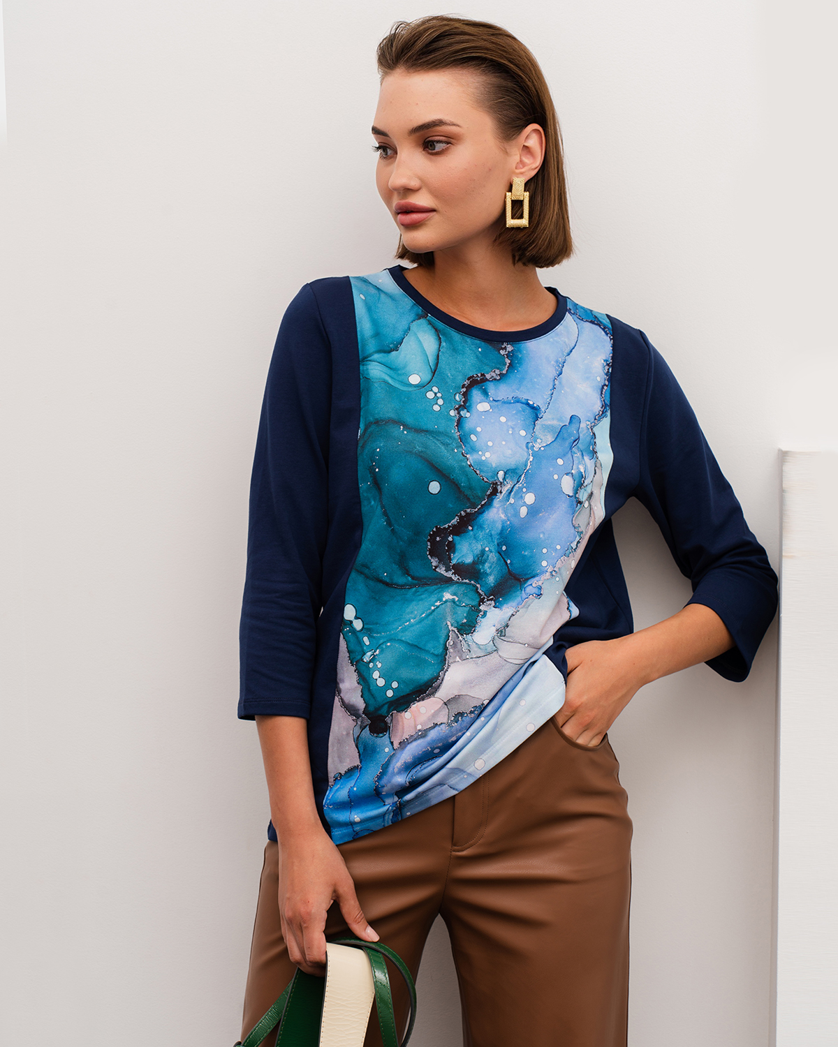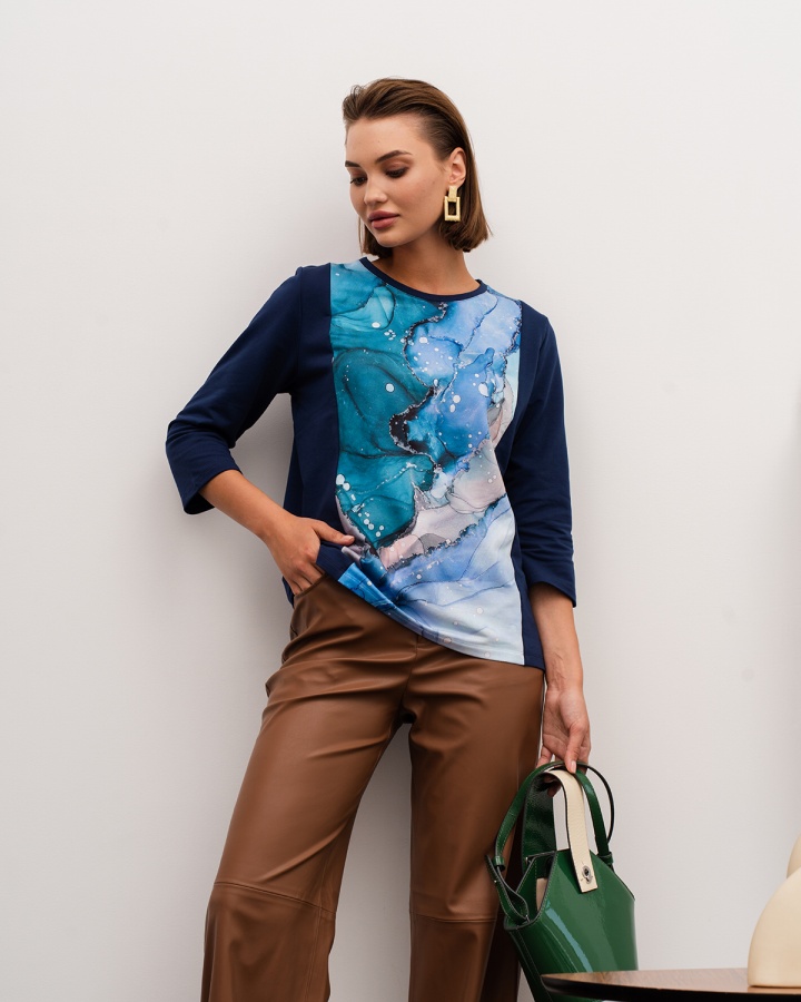 Лонгслив с принтом — авторская модель свободного кроя с продуманными деталями. Женская кофта сделана из хлопкового футера двунитки, который отличается мягкостью и износостойкостью. Материал хорошо держит форму, не скатывается и спокойно переносит стирки. Принтованная вставка по центру — настоящее произведение искусства от наших художников. К тому же эта вертикаль визуально вытягивает силуэт и стройнит его. Лонгслив женский имеет рукав ¾, который красиво открывает запястья и акцентирует внимание на самой тонкой части рук. Такой приём стройнит, а также идеально подходит девушкам с длинными руками, которым сложно найти подходящую длину. Хлопковая кофта идеально подходит для любого типа фигуры. Выбирая изделие, ориентируйтесь на таблицу в карусели. Обратите внимание, что кофта для женщин представлена и в больших размерах. 80% хлопок, 15% полиэстер, 5% лайкра