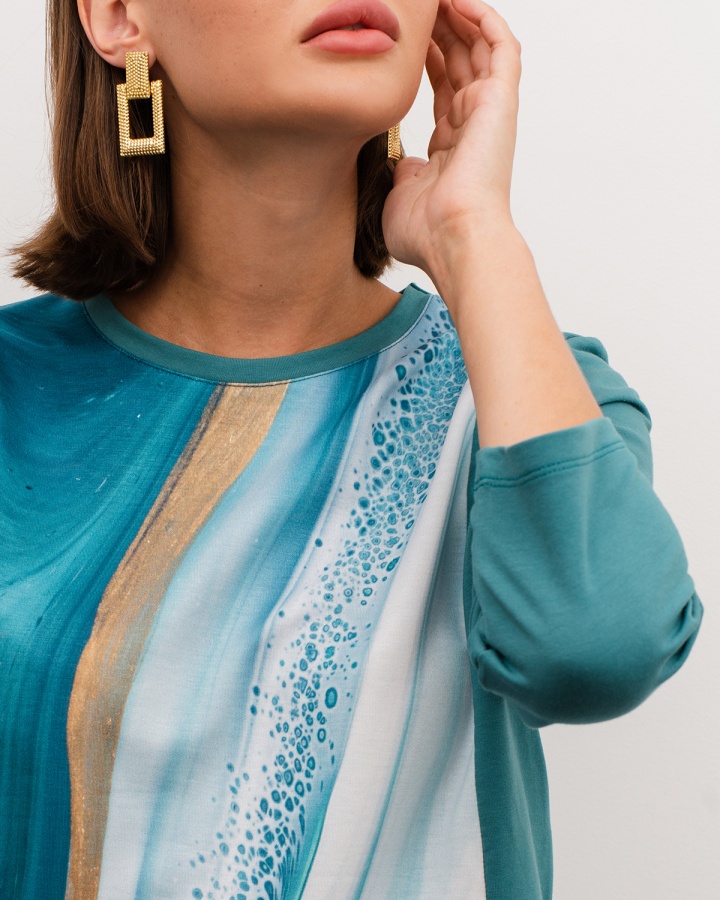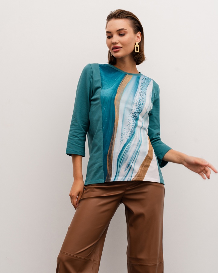 Лонгслив с принтом — авторская модель свободного кроя с продуманными деталями. Женская кофта сделана из хлопкового футера двунитки, который отличается мягкостью и износостойкостью. Материал хорошо держит форму, не скатывается и спокойно переносит стирки. Принтованная вставка по центру — настоящее произведение искусства от наших художников. К тому же эта вертикаль визуально вытягивает силуэт и стройнит его. Лонгслив женский имеет рукав ¾, который красиво открывает запястья и акцентирует внимание на самой тонкой части рук. Такой приём стройнит, а также идеально подходит девушкам с длинными руками, которым сложно найти подходящую длину. Хлопковая кофта идеально подходит для любого типа фигуры. Выбирая изделие, ориентируйтесь на таблицу в карусели. Обратите внимание, что кофта для женщин представлена и в больших размерах. 80% хлопок, 15% полиэстер, 5% лайкра