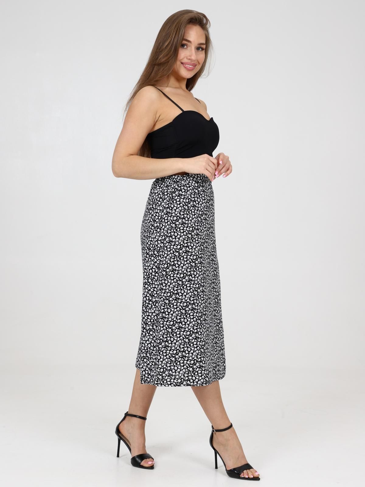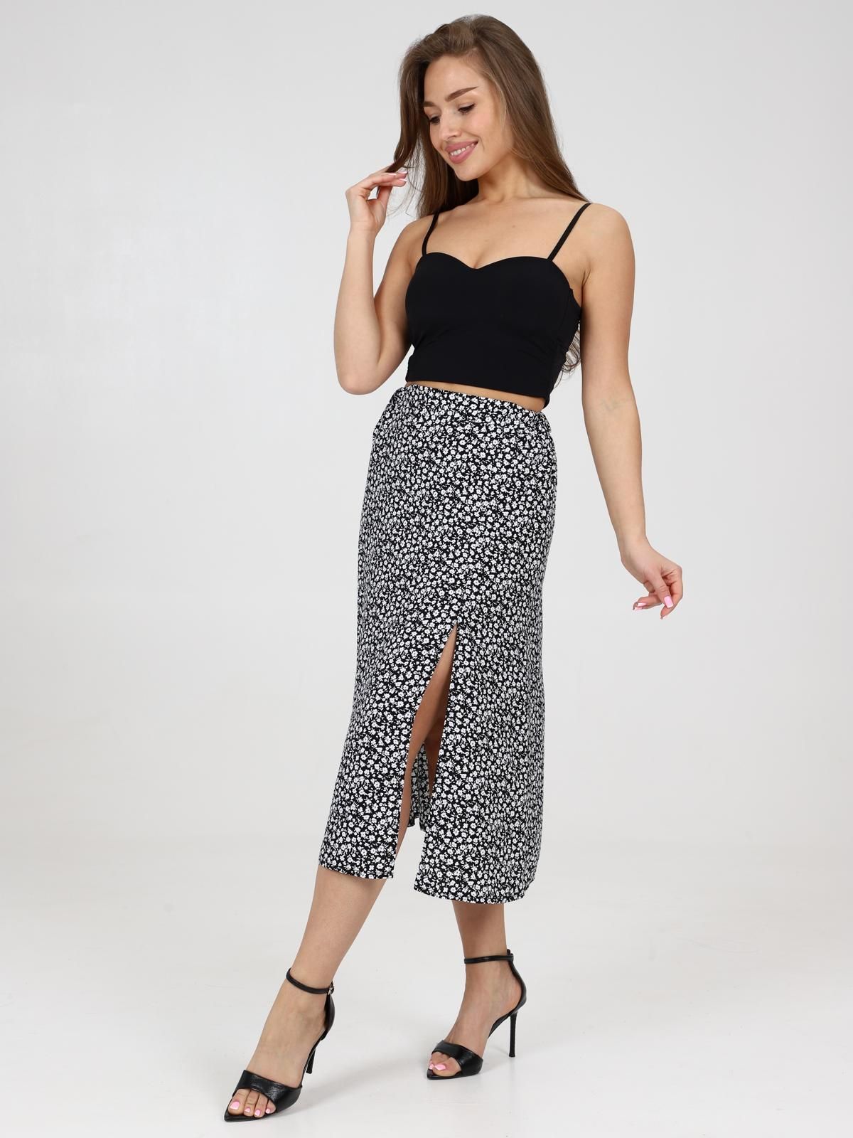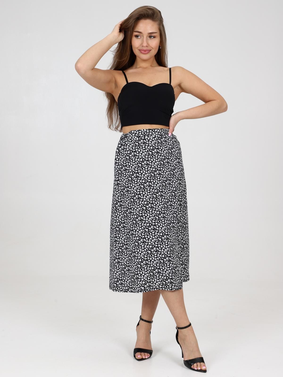 Юбка женская "макси" из набивного штапеля. Пояс притачной на резинке, по переду изделия - разрез.