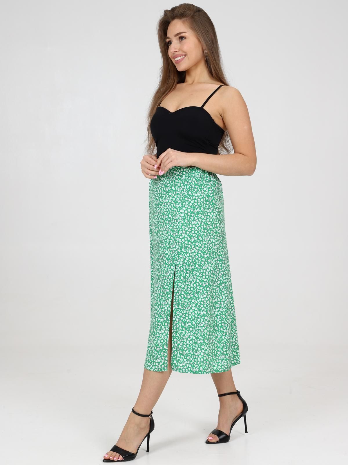 Юбка женская "макси" из набивного штапеля. Пояс притачной на резинке, по переду изделия - разрез.