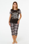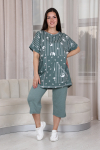 Костюм женский летний изготовлен из качественных материалов, обеспечивающих комфорт и долговечность.