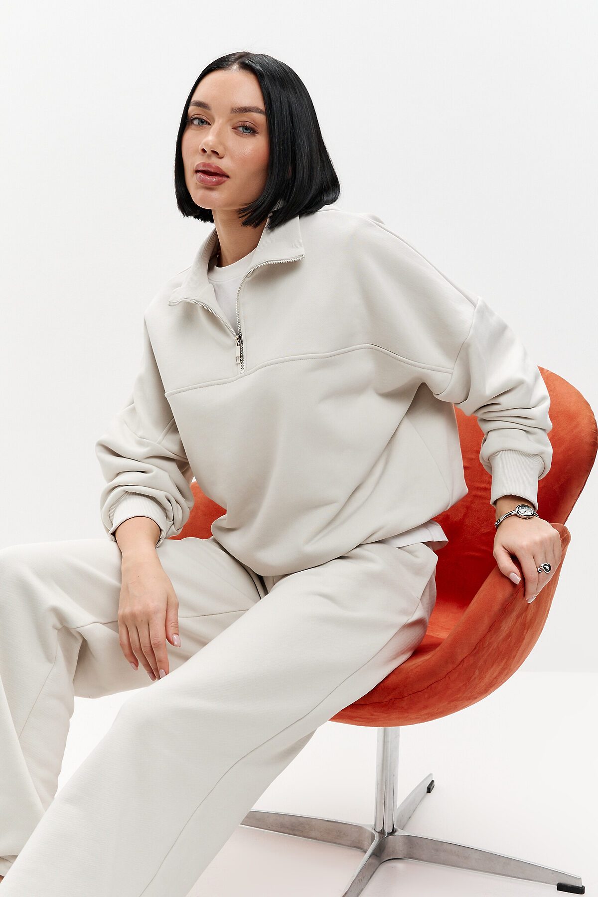 Худи с воротом W1Hu405F3 Жемчужный 1238093