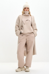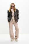 Брюки широкого кроя, пояс выполнен из основной ткани, удобные боковые карманы. По низу брючин регулируемая резинка-утяжка, которая позволяет носить комбинезон прямого кроя, либо затянув низ - как джоггеры.