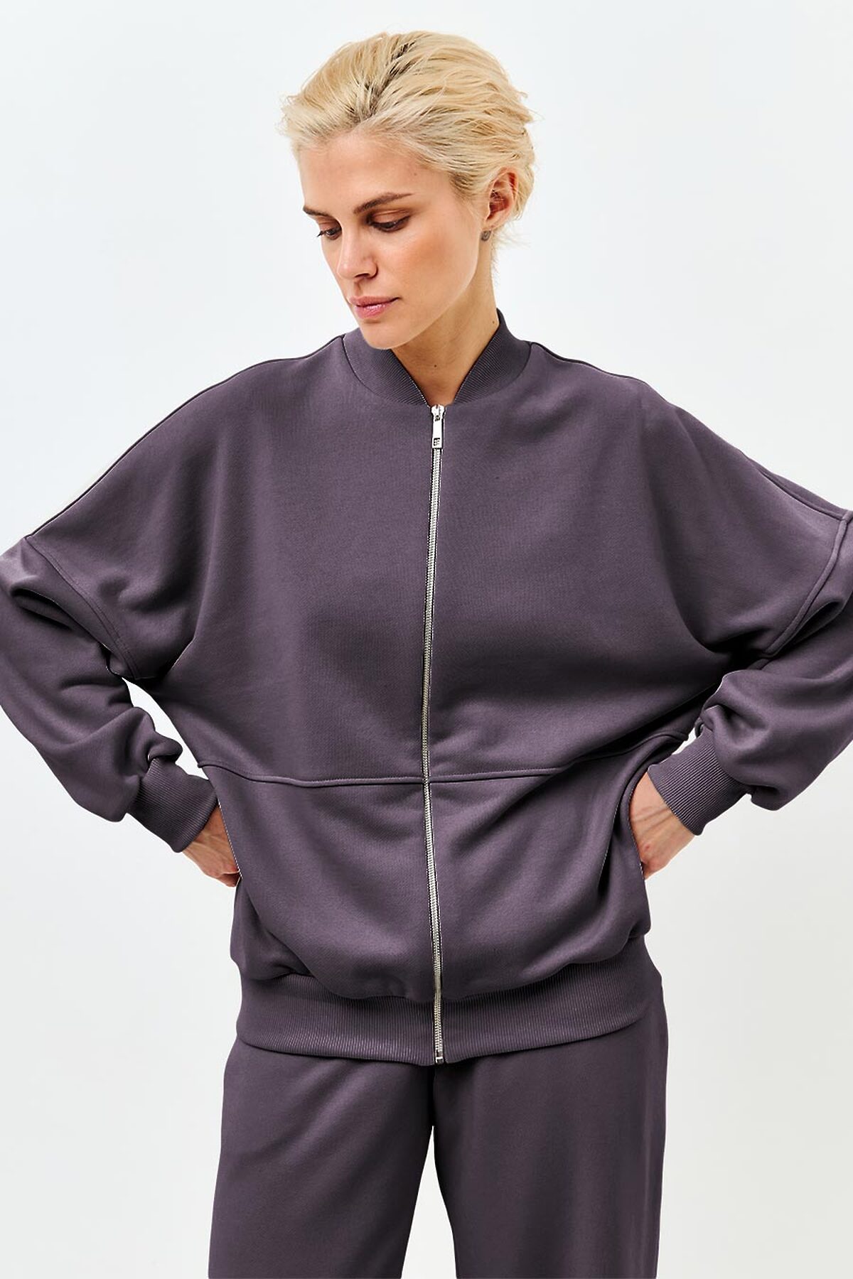 Толстовка оверсайз с геометричными 3d отстрочками, застегивается на металлическую молнию. Манжет, ворот и низ изделия выполнен из качественного эластичного материала в рубчик.