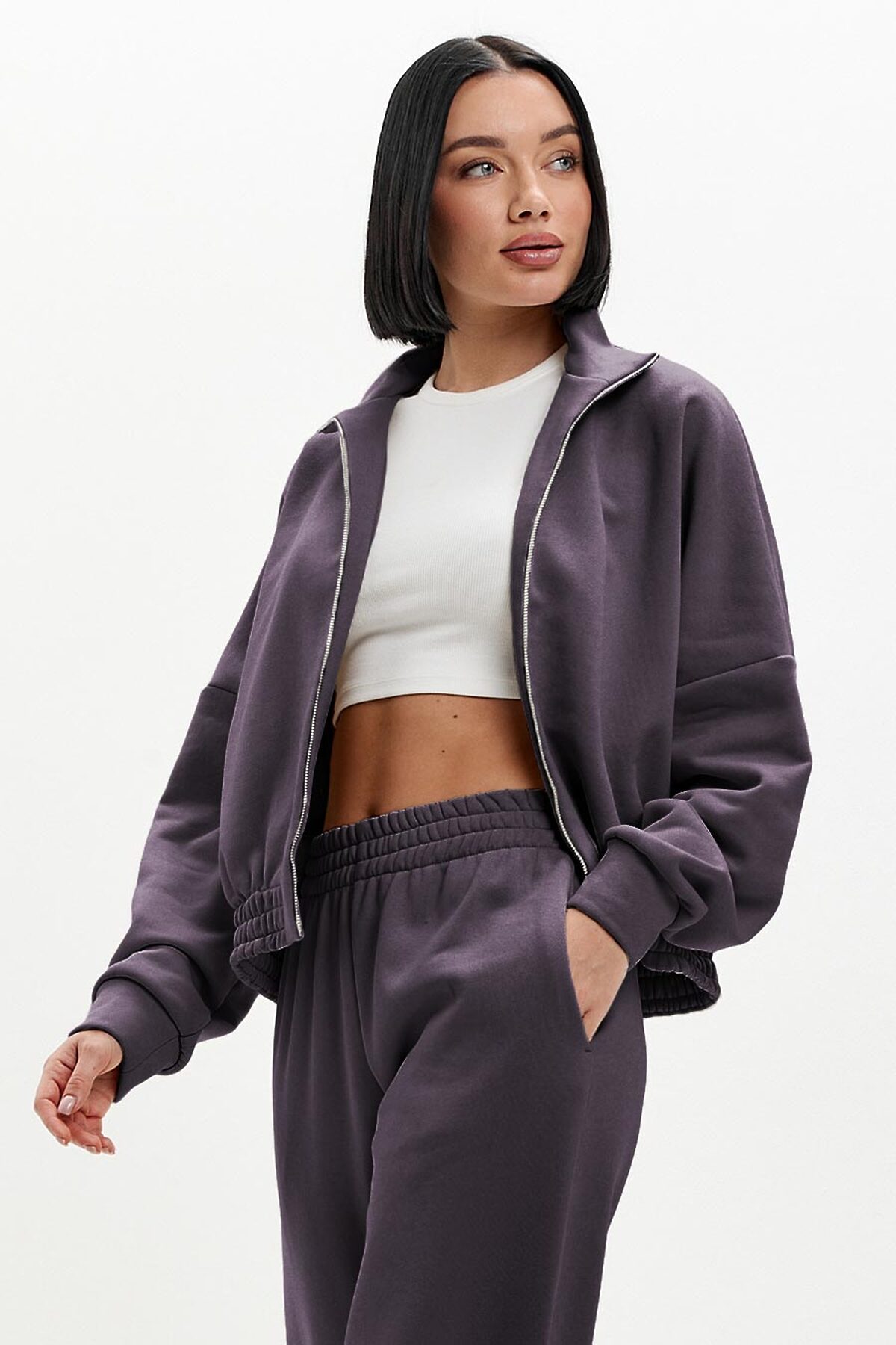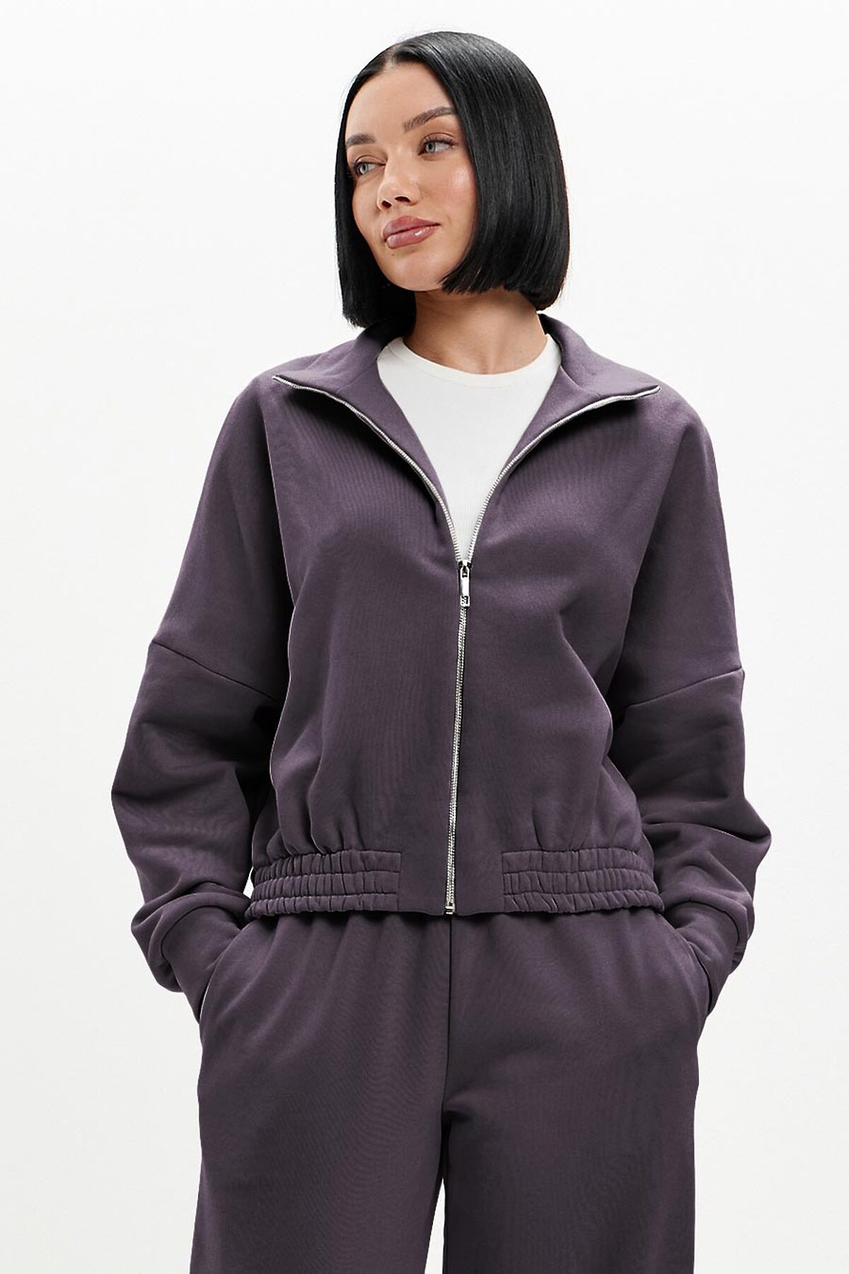 Толстовка на разъемной молнии. Ворот стойка и манжеты выполнены из основной ткани. Низ изделия на резинке с тройной отстрочкой.