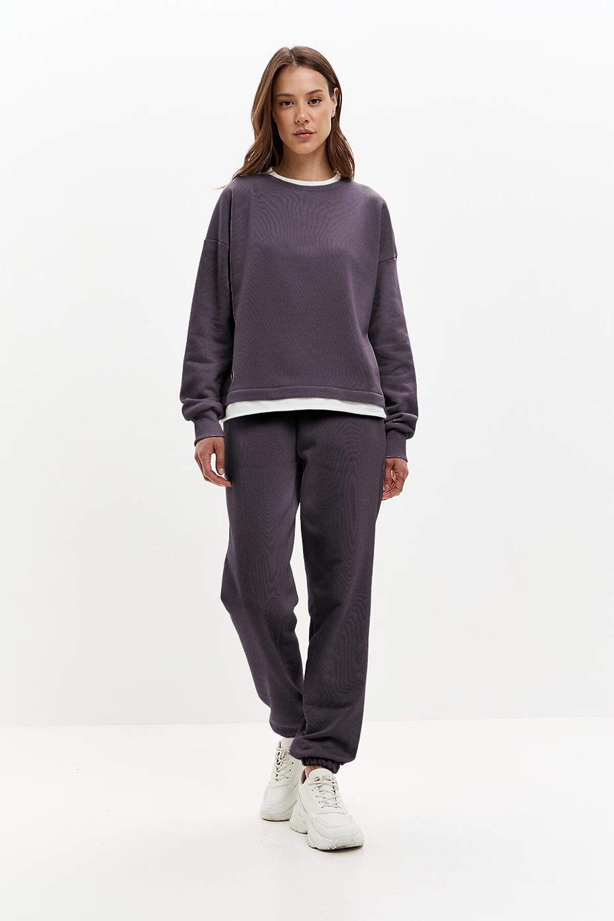 Модель оверсайз, со спущенной линией плеча. Контрастная белая горловина и дублирующая белая полоска по низу имитирует многослойность. Горловина и манжеты изделия выполнены из качественного эластичного материала в рубчик. Очень комфортная и универсальная модель.