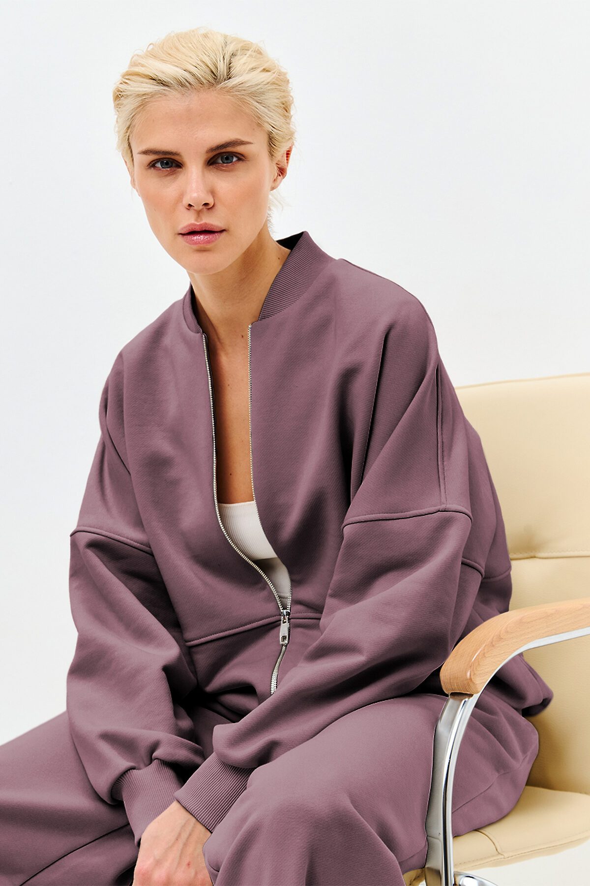 Толстовка оверсайз с геометричными 3d отстрочками, застегивается на металлическую молнию. Манжет, ворот и низ изделия выполнен из качественного эластичного материала в рубчик.