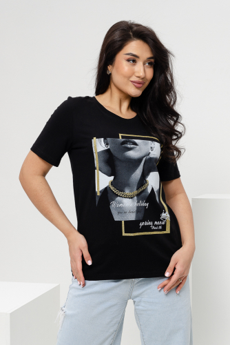 Футболка прямого силуэта с принтом. Горловина круглая, рукав цельнокроеный с отворотами по низу. Удобная, практичная, лёгкая, не стесняет движения.