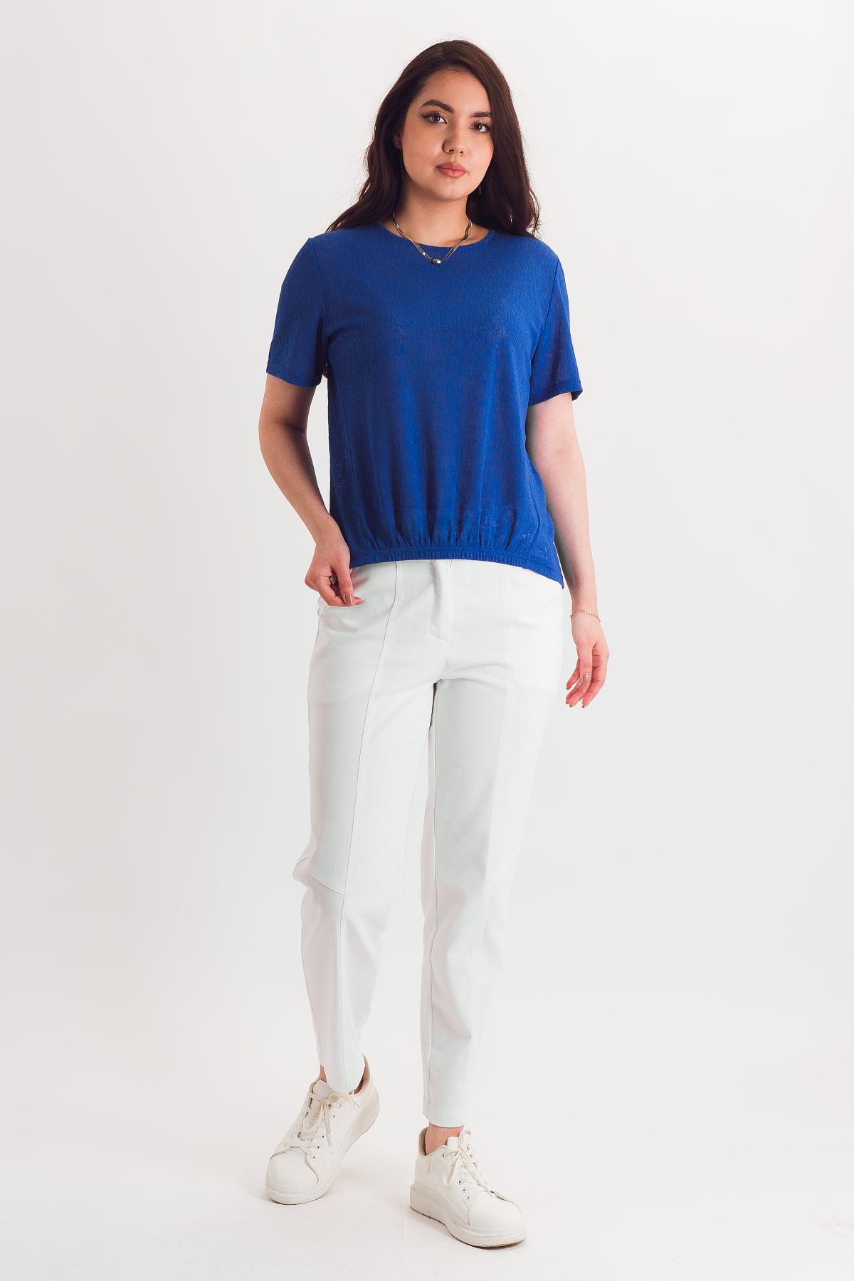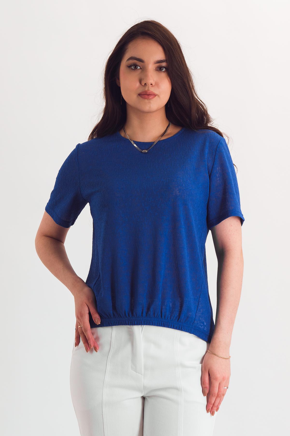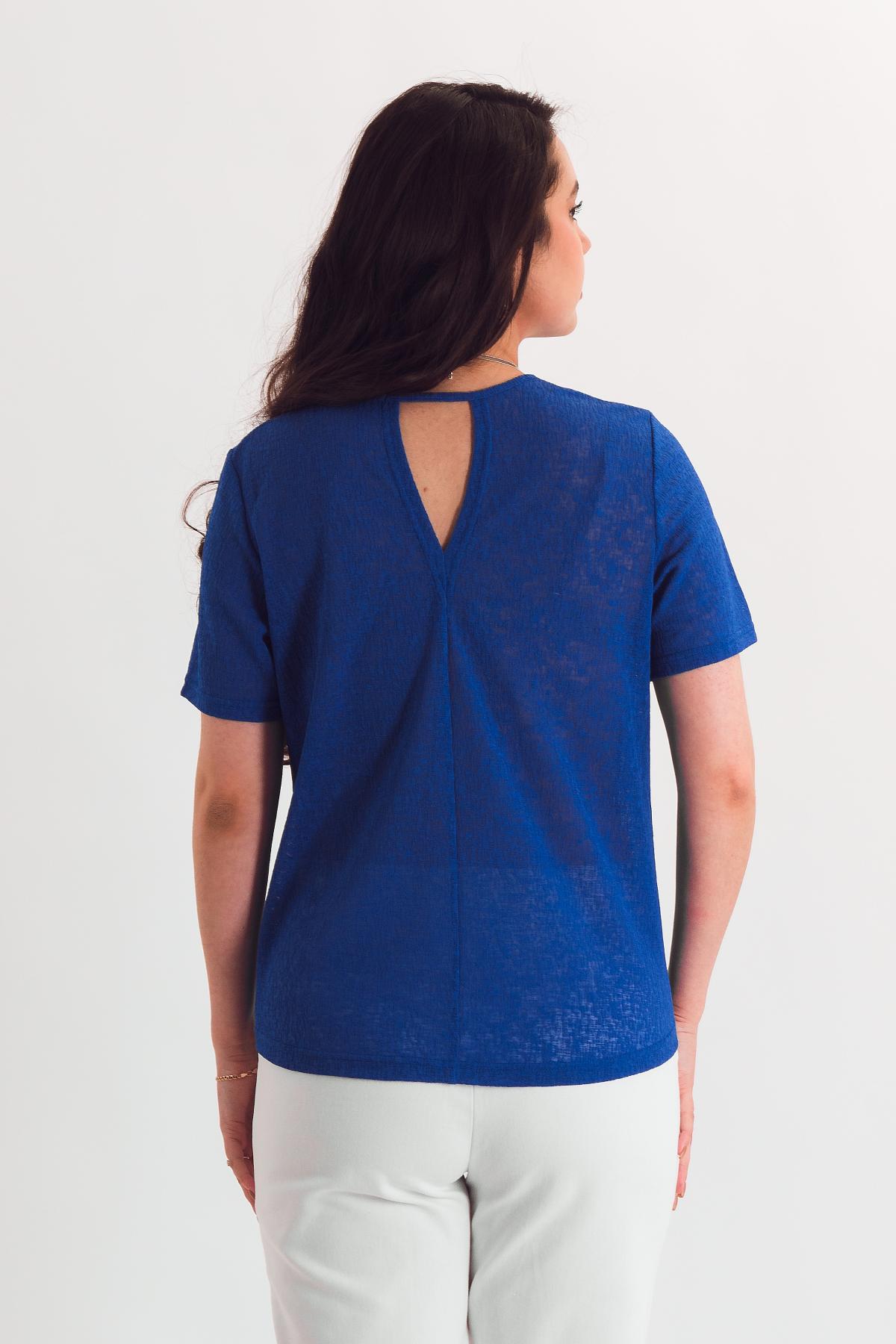 Описание: Футболка приобретает совершенно новое прочтение за счет сборки центра переда на резинку и треугольного выреза по спинке.