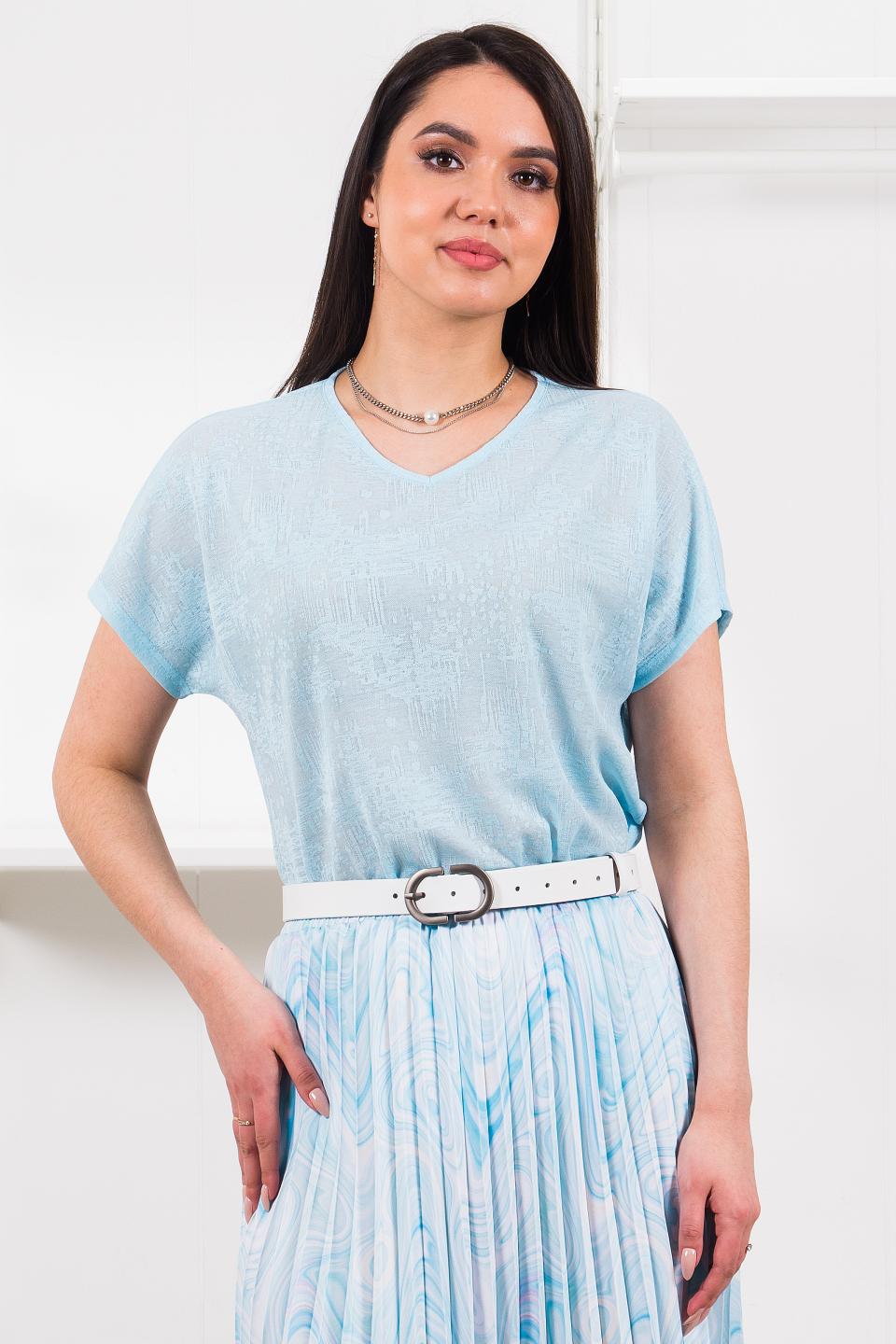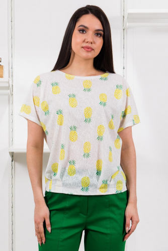 Описание: Свободная блузка со спущенным плечом дарит комфорт движений и стильный образ! Неглубокий V-образный вырез, небольшие разрезы по боковым швам.